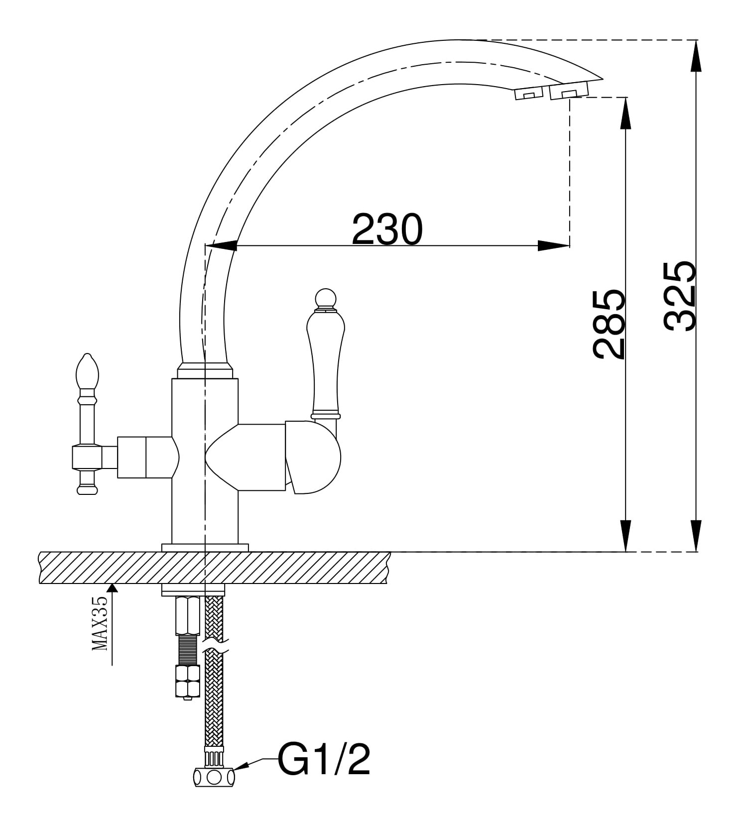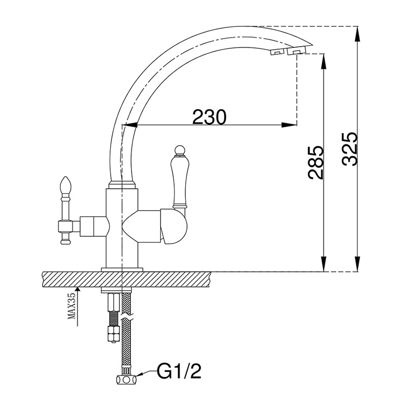 Смеситель для кухни с возможностью подключения фильтра питьевой воды. Модель выполнена в классическом стиле. Высокий поворотный излив обеспечивает непревзойденное удобство использования.