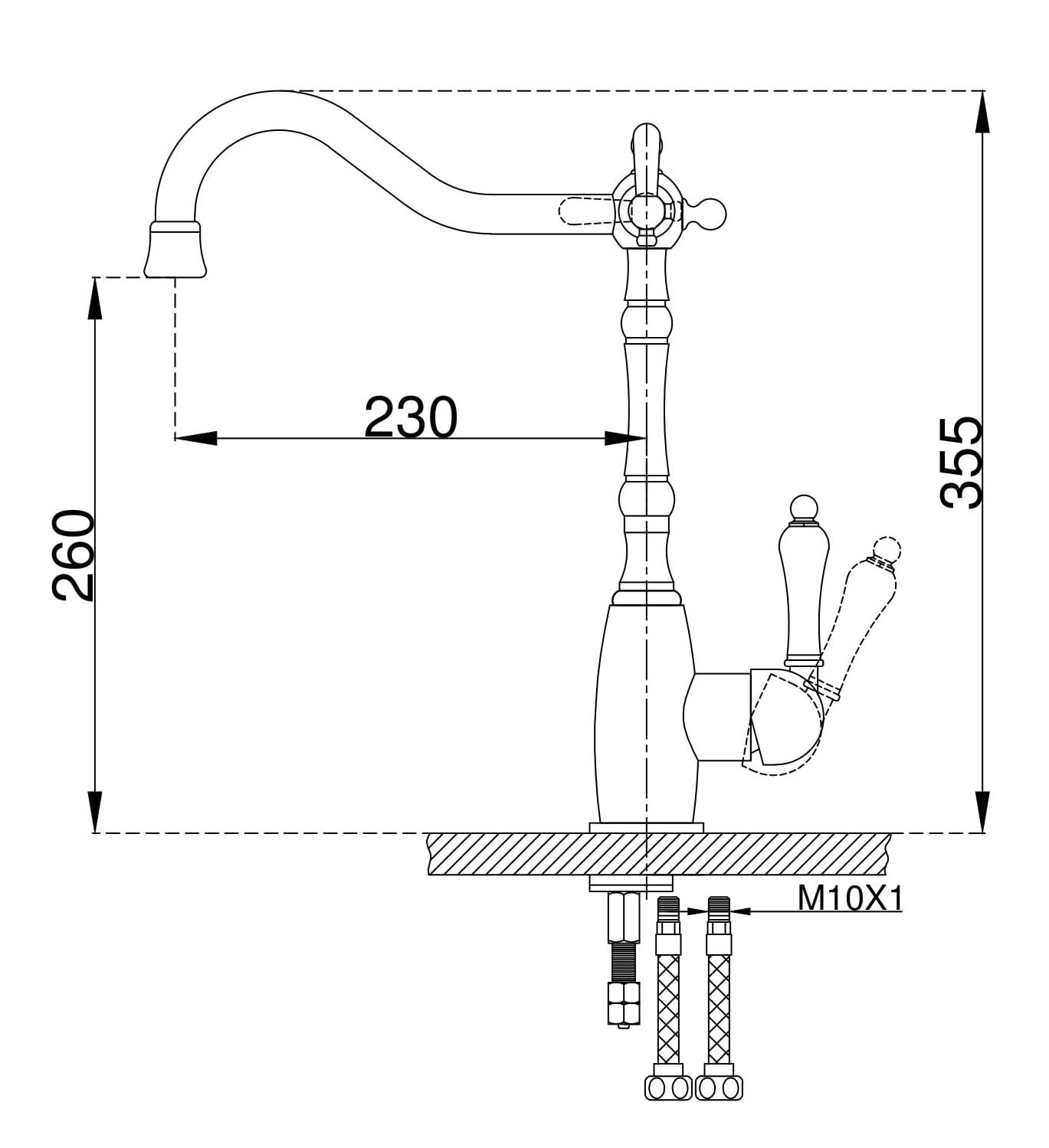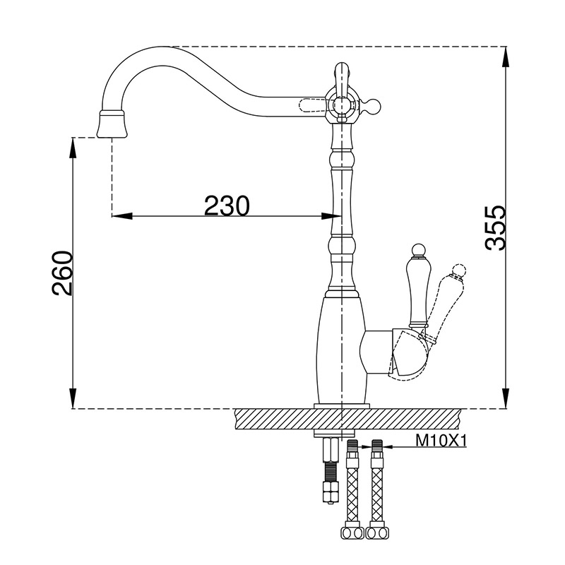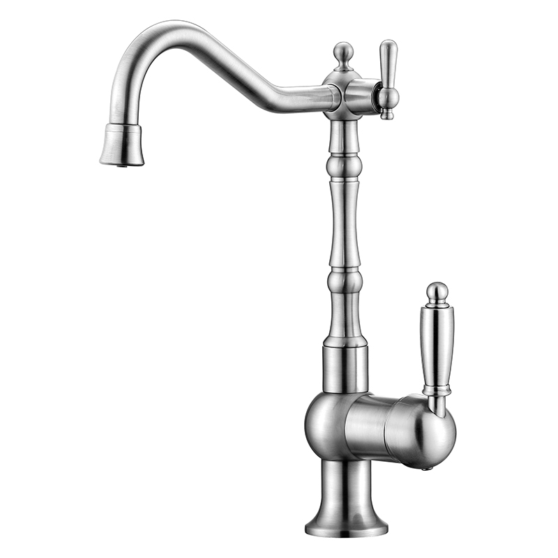 Смеситель для кухни с возможностью подключения фильтра питьевой воды. Модель выполнена в классическом стиле. Высокий поворотный излив обеспечивает непревзойденное удобство использования. Переключатель на фильтр расположен в верхней части смесителя у основания излива.