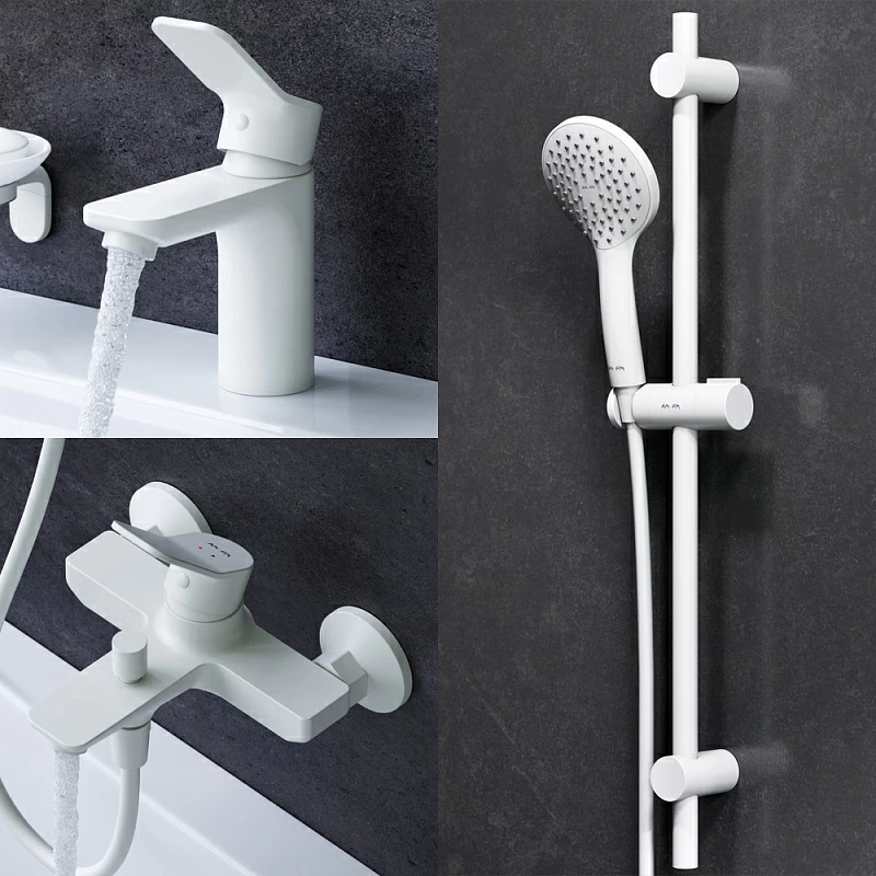3 в 1: набор из двух смесителей и душевого комплекта гармонично дополняют друг друга как функционально так и эстетически.