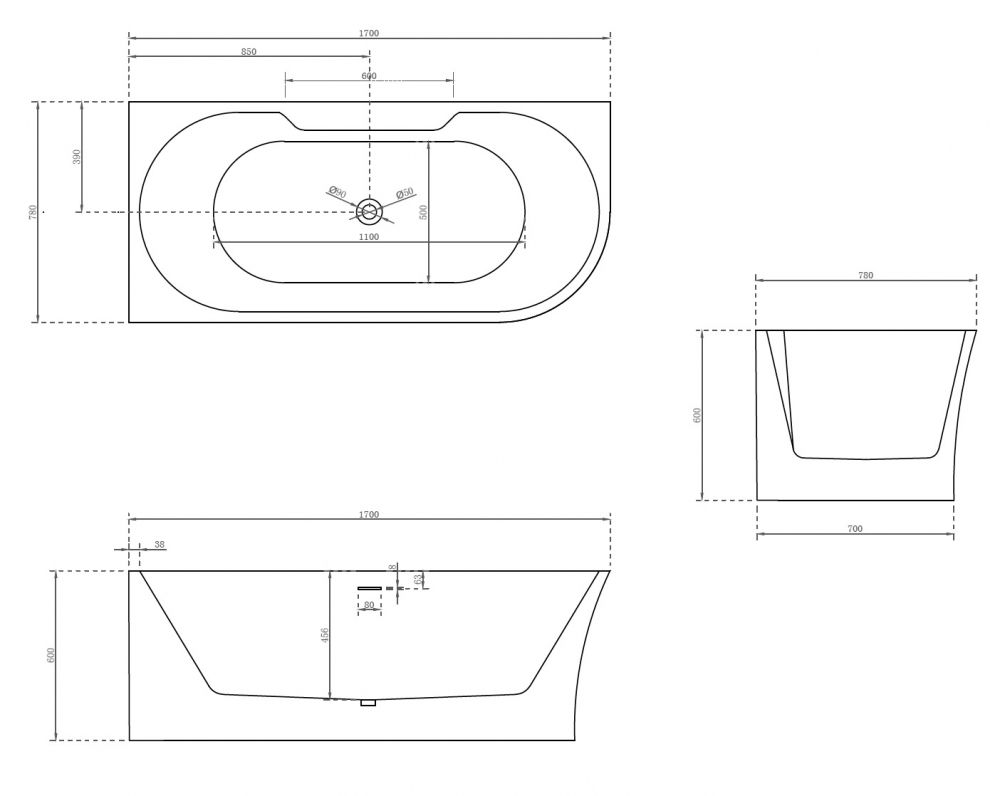 Ванна Abber, 170х78, AB9335-1.7 L