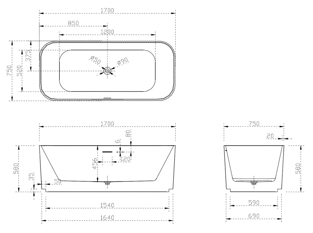 Тип установки ванны Отдельностоящая