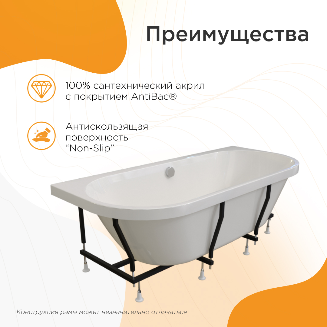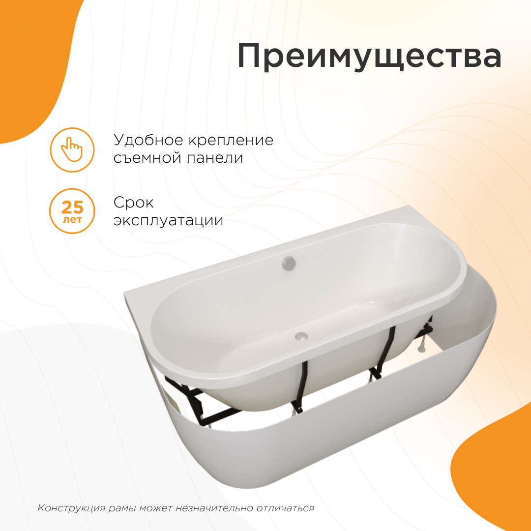 Акриловая ванна "Вальс Макси" имеет современный минималистичный дизайн, покоряет своей выразительностью и создает особенную, легкую атмосферу в ванной комнате. Пристенная ванна с мягкими контурами и тонкими боковыми стенками смотрится невероятно стильно, соответствуя актуальным тенденциям в дизайне. Особенностью этой модели является два варианта фронтальной панели: