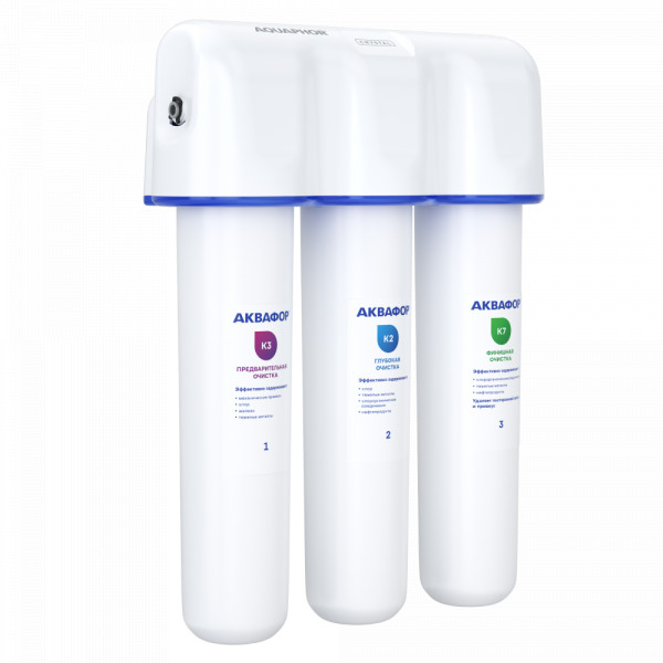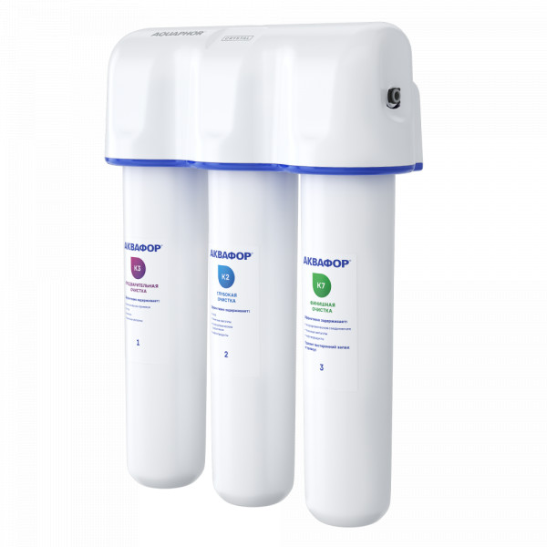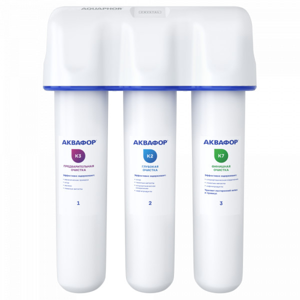 Удаляет хлор, тяжелые металлы, пестициды, нефтепродукты и другие распространенные загрязнители. Подает чистую питьевую воду на отдельный кран. Картриджи меняются одновременно раз в год.