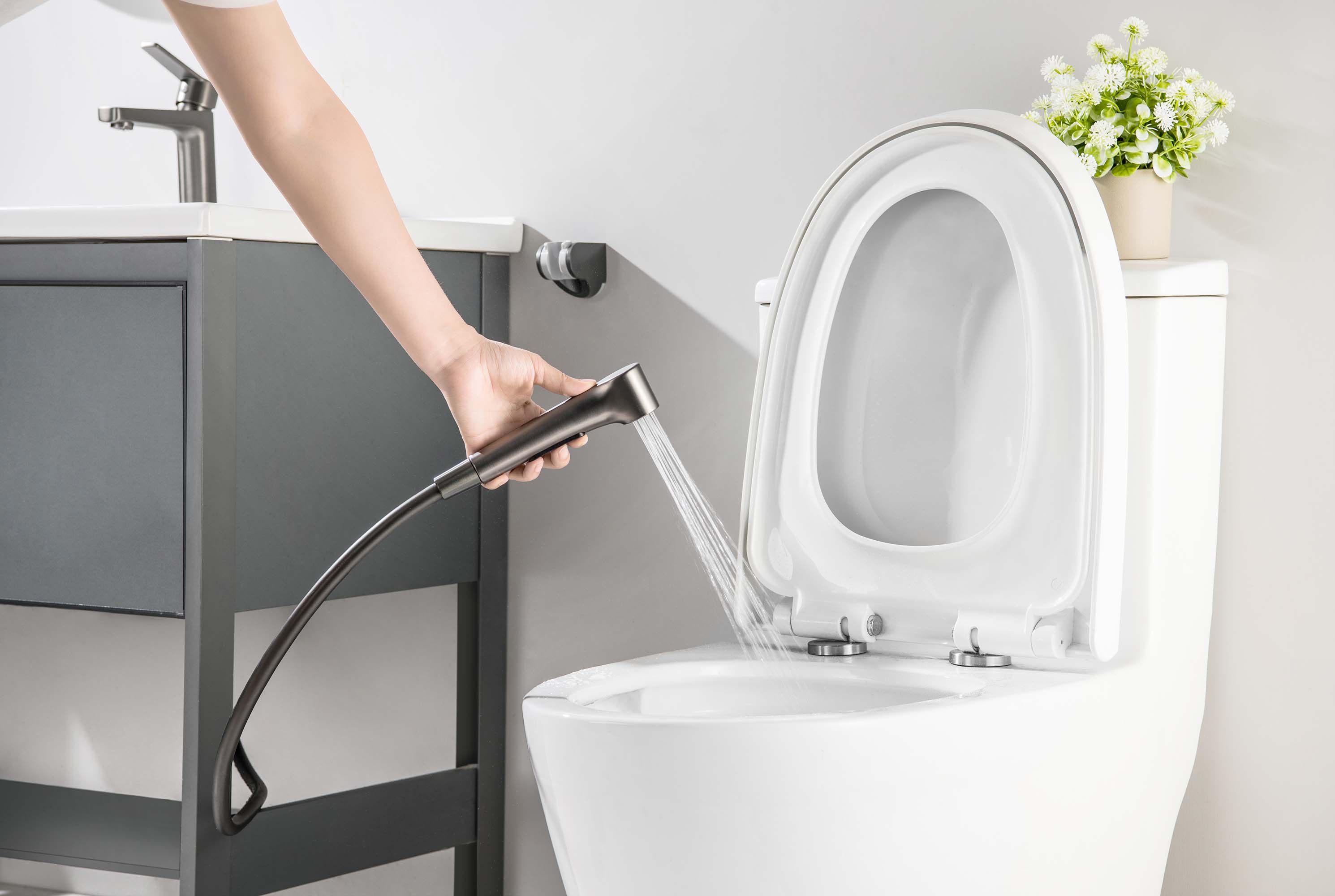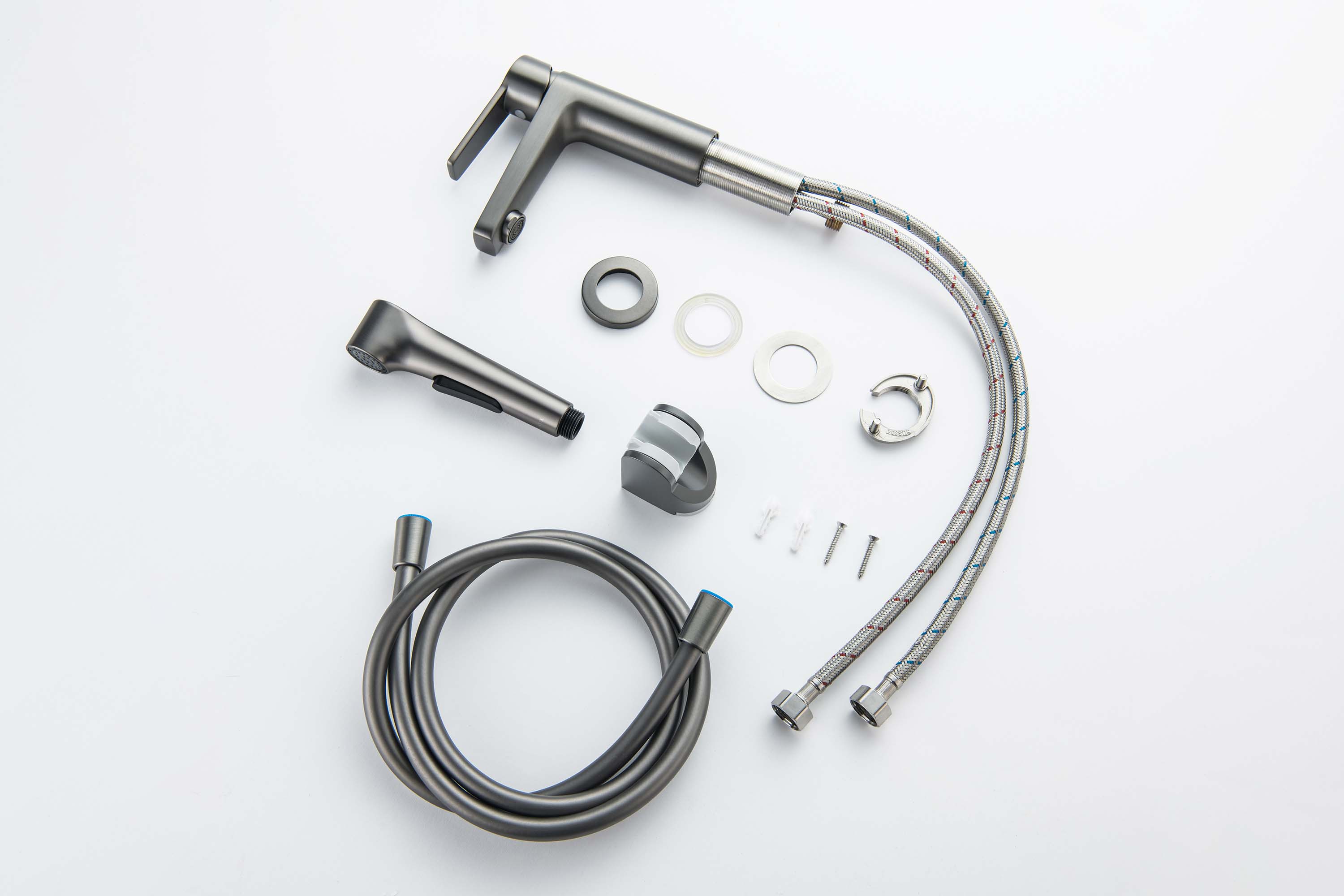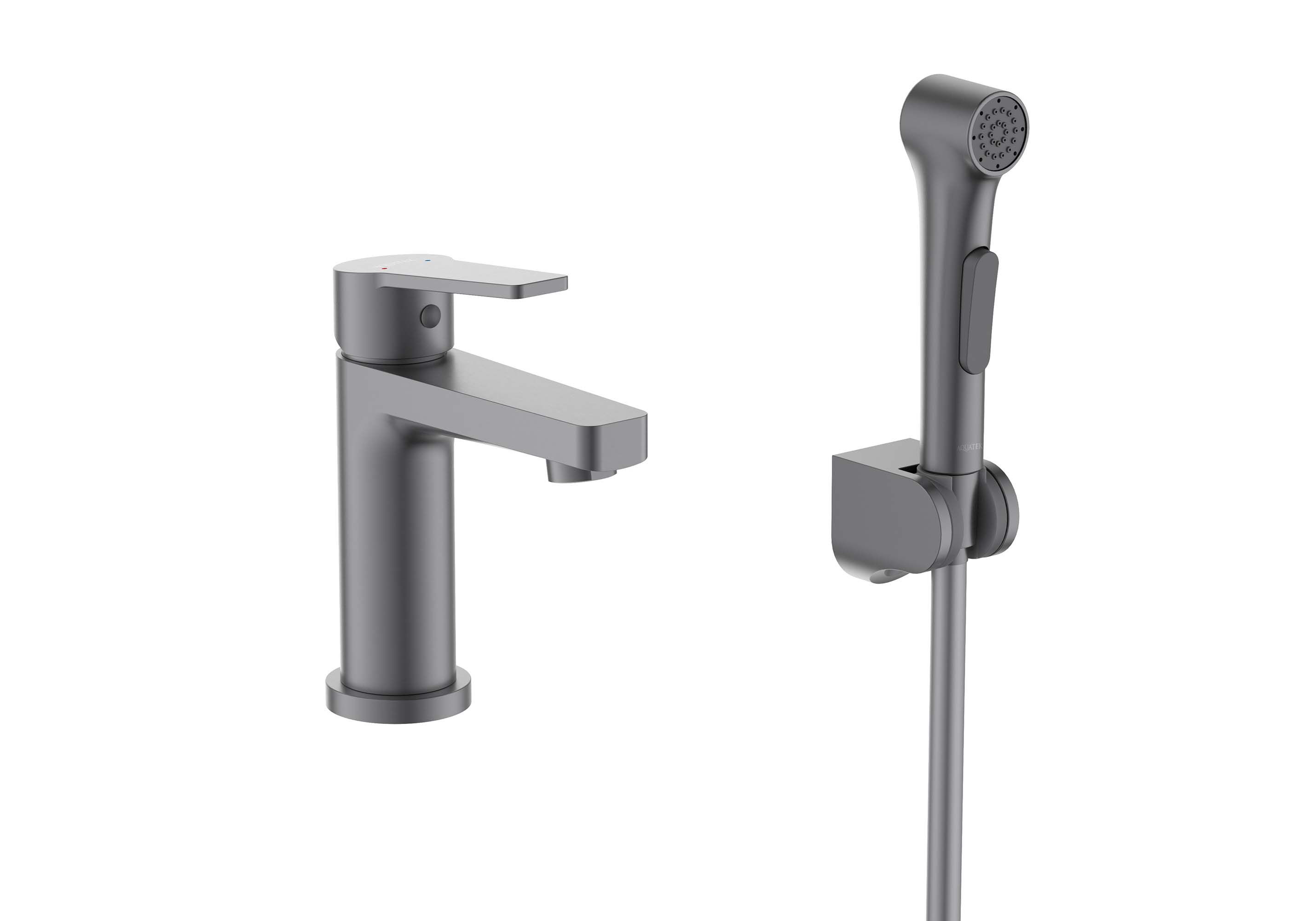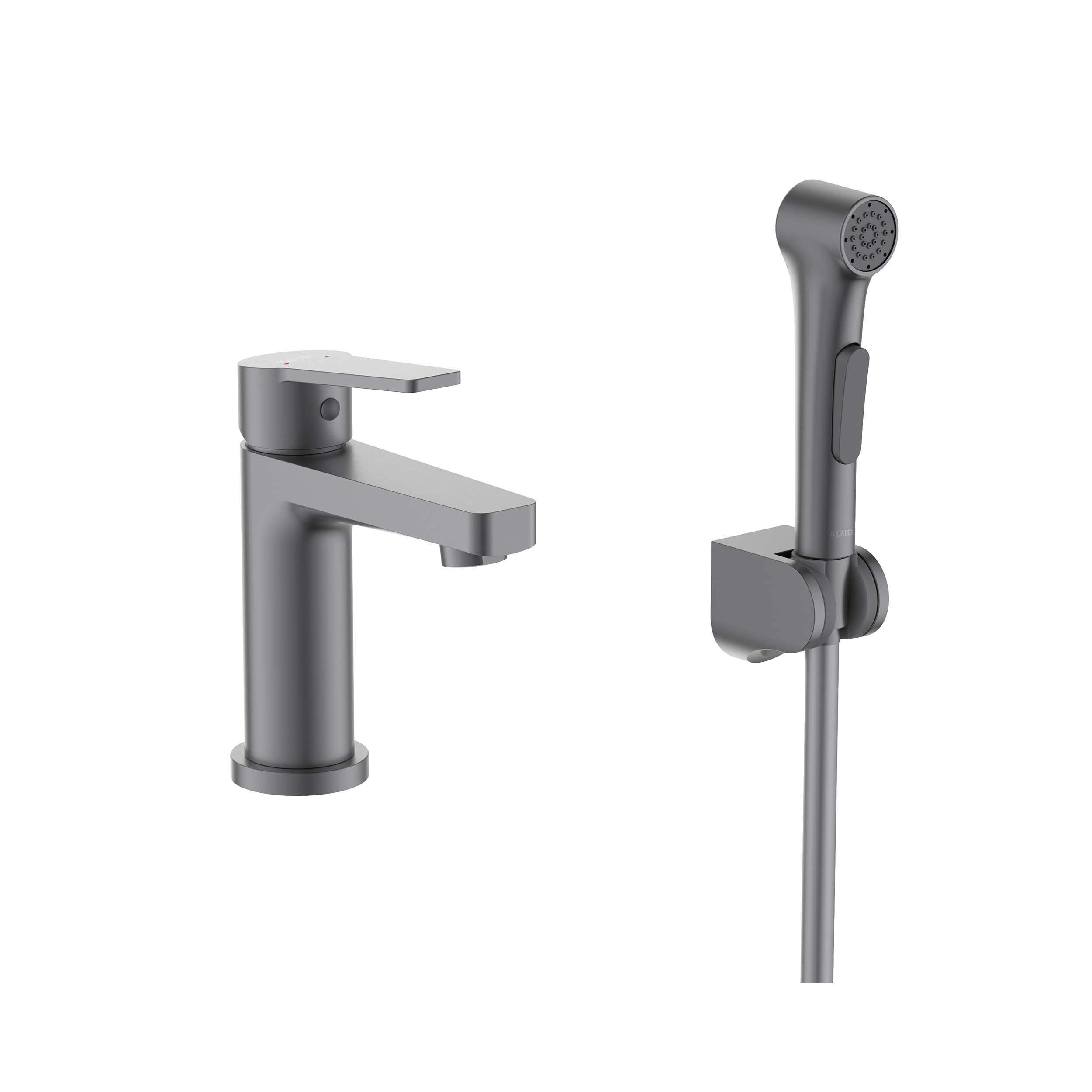 Смеситель для раковины с гигиеническим душем Aquatek ЛУГАНО, оружейная сталь, AQ1712BGM