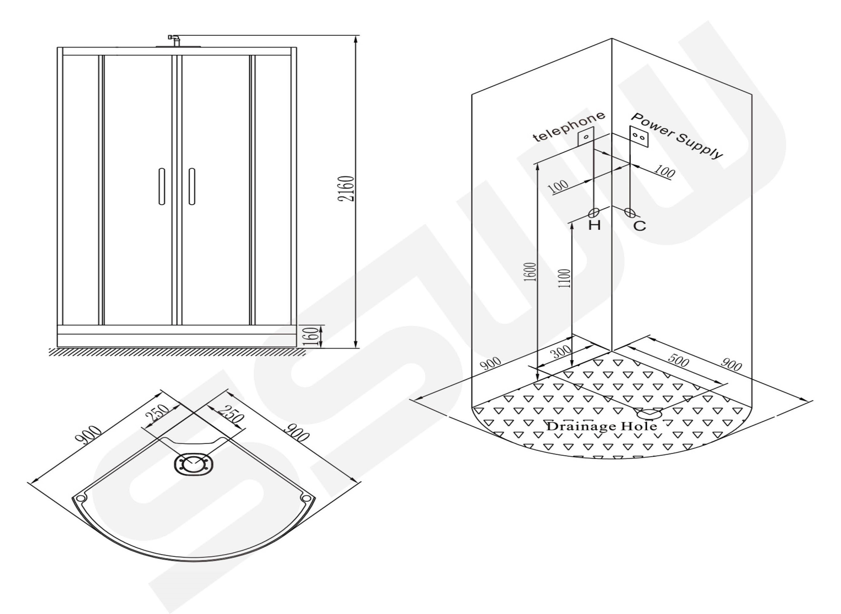 Душевая кабина SSWW, 90x90, BU601