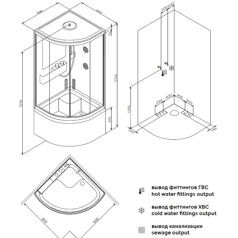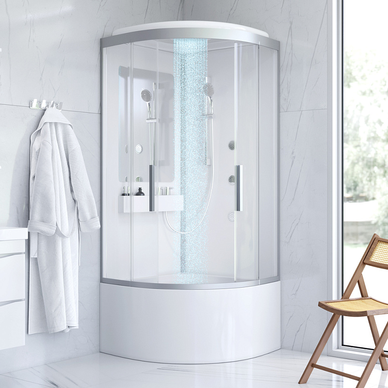 Душевая кабина бренда AM.PM коллекции Like представлена в модном стиле Dynamic Organic, созданном с природными формами в сочетании с четкими линиями. В душевой кабине этот стиль воплотился в премиальной легкости конструкции: тонкие профили и минимальное количество акрила. Форма кабины - 1/4 круга. Цвет профиля - хром. Цвет поддона - белый. Размер (Ш/Г/В): 900x900x2230 мм. Материал поддона (слив-перелив в наличии) - акрил. Высота поддона - 475 мм. Материал задних стенок - стекло. Материал дверок - прозрачное стекло. Толщина стекла - 5 мм. Наличие крыши - да.