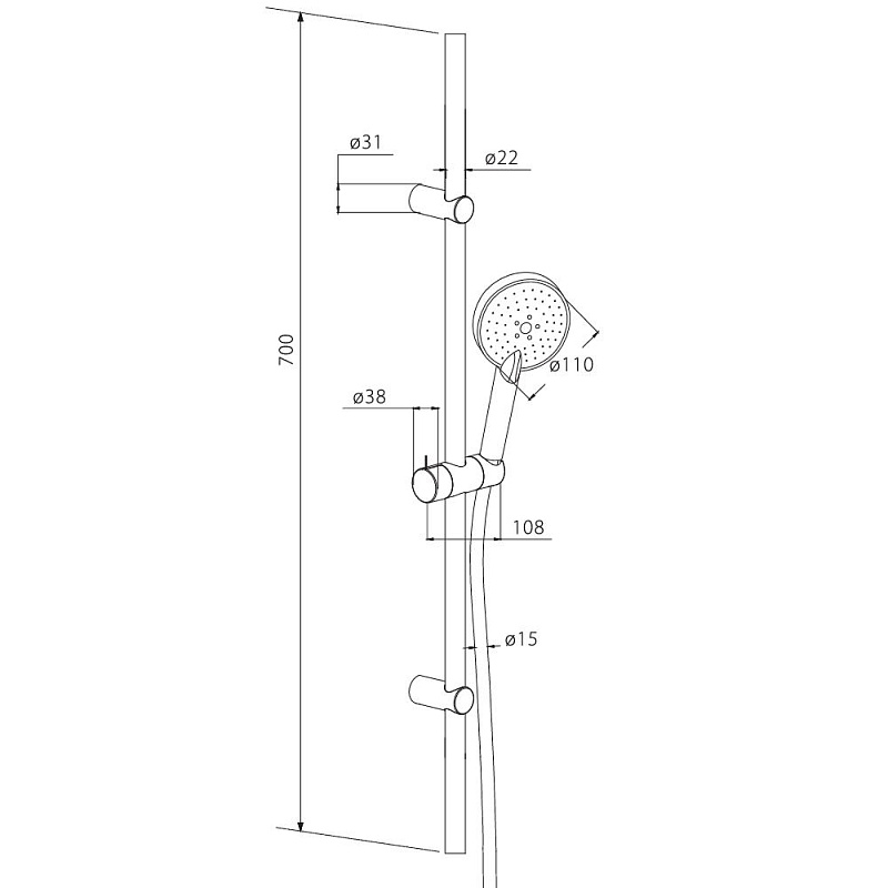 Длина душевой штанги 700