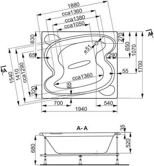 Ванна Vagnerplast Helios, 194х170, VPBA197HEL2X-04