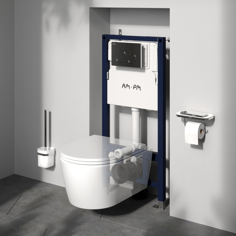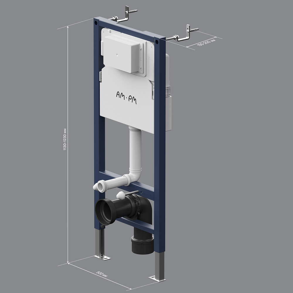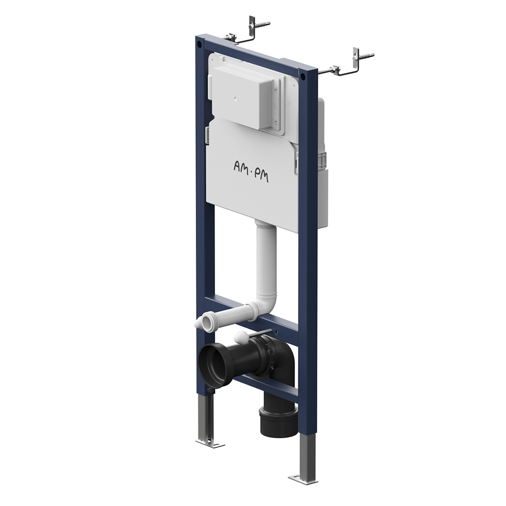 Инсталляция для подвесного унитаза бренда AM.PM коллекции PrimeFit с механическим управлением смыва включает в себя максимально полный комплект поставки: крепления, бачок, патрубки, звукоизолирующую прокладку. Размер изделия (Ш/Г/В): 500x150-200x1130-1230 мм. Цвет – синий каркас, белый пластик. Материал изделия - нержавеющая сталь, ABS-пластик.