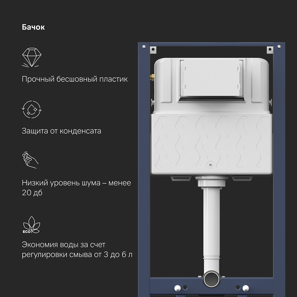 Инсталляция для подвесного унитаза бренда AM.PM коллекции Pro с пневматическим управлением смыва включает в себя максимально полный комплект поставки: крепления, патрубки, звукоизолирующую прокладку, пневматическую двухрежимную клавишу смыва. Размер инсталляции(Ш/Г/В): 530x140-230x1115-1320 мм. Размер клавиши (Ш/Г/В): 210x10x138 мм. Цвет и материал: синий каркас из нержавеющей стали, белый бачок из ABS-пластика, пневматическая черная клавиша. Форма кнопок: круглые.