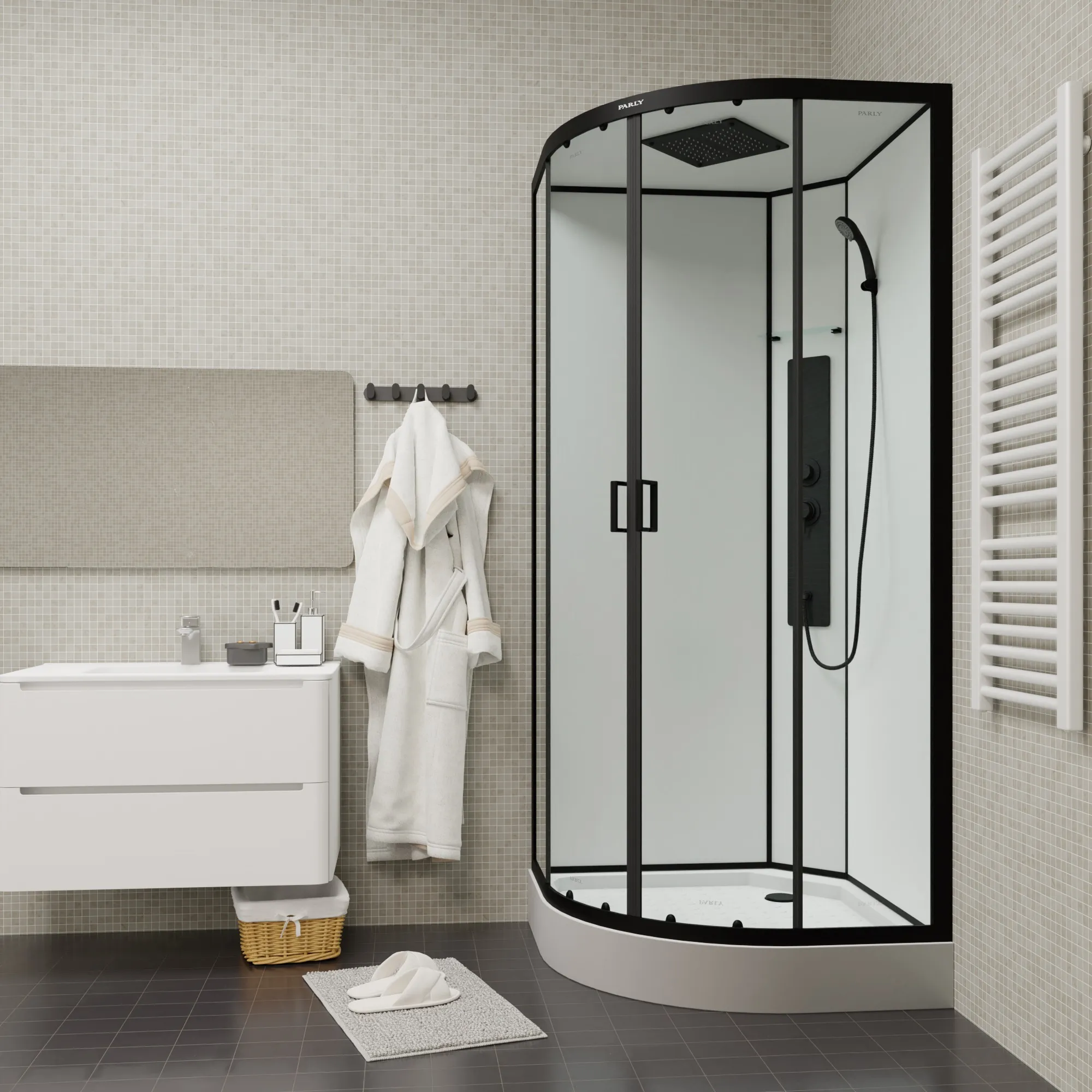 В современном мире актуален тренд на рациональность и практичность. При тотальном дефиците времени, многие люди не могут себе позволить полежать в теплой ванне. В этом случае душевые кабины являются лучшим функциональным решением для ванных комнат. Душевые кабины бренда PARLY изготовлены из высококачественных материалов с учетом современных дизайнерских тенденций и являются отличной альтернативой классическим ванным.