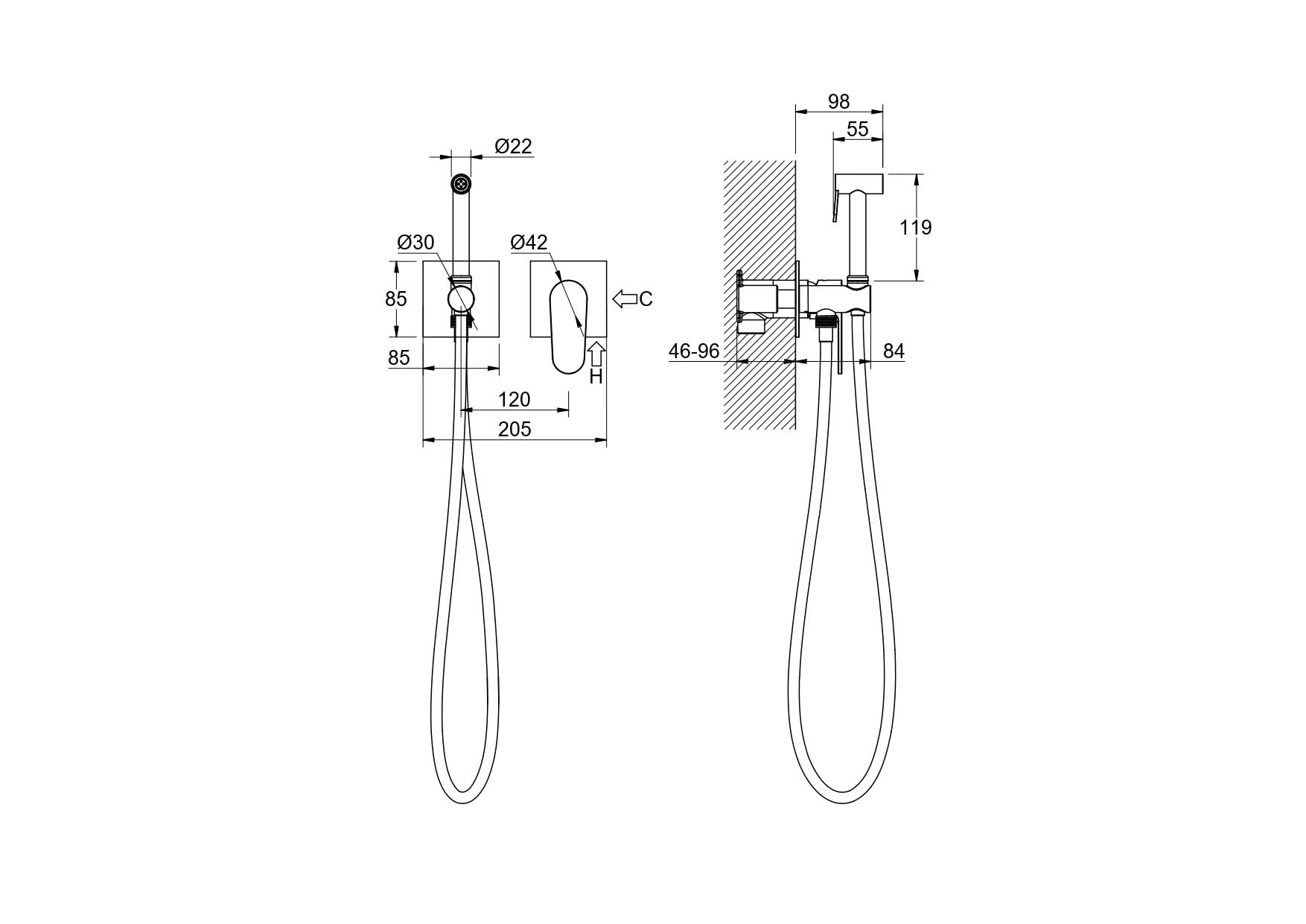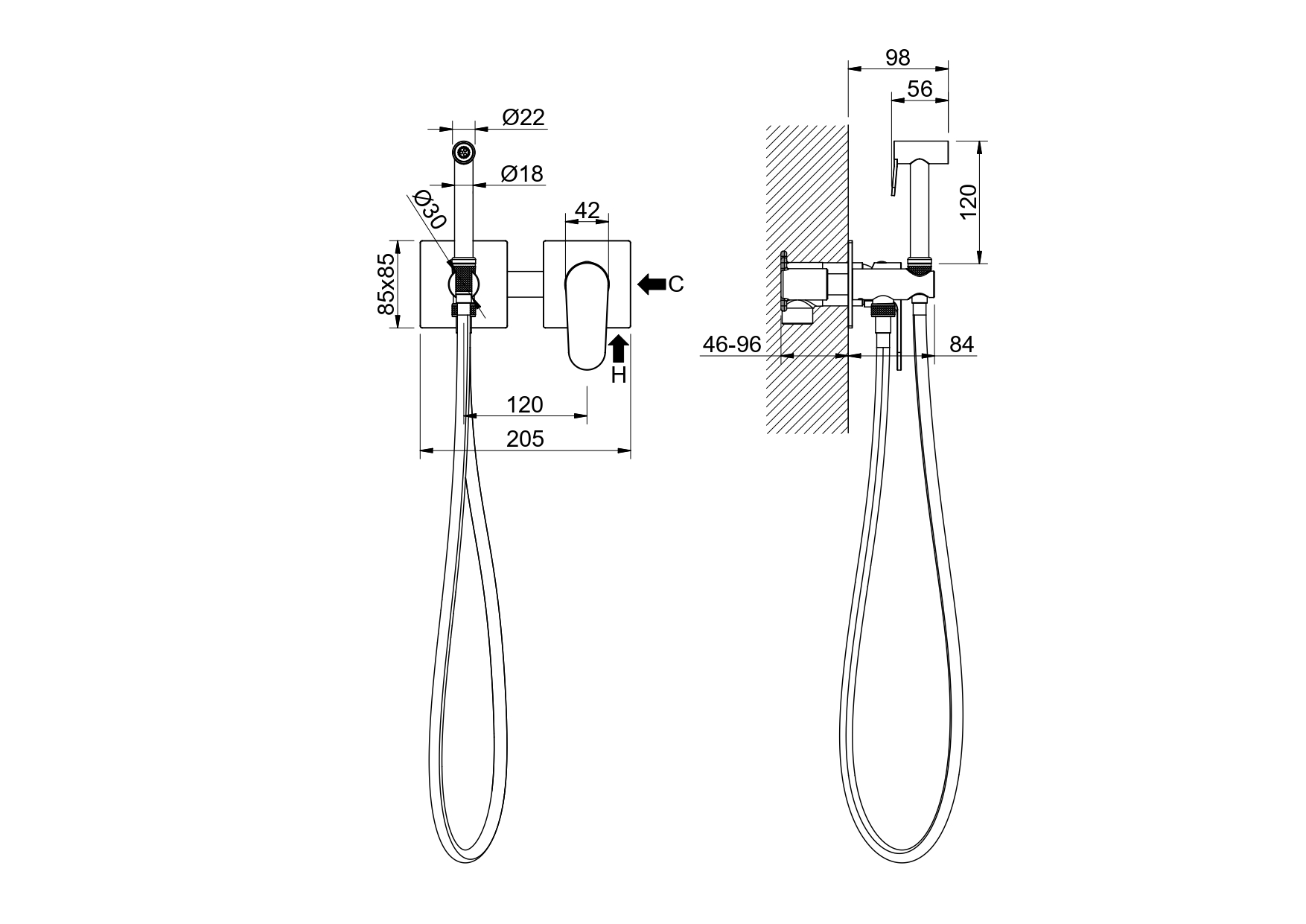 Длина шланга, см 120