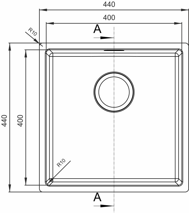 Кухонная мойка Florentina Оптима-HМ, нержавеющая сталь, OHM.400.400.B.10.S.10