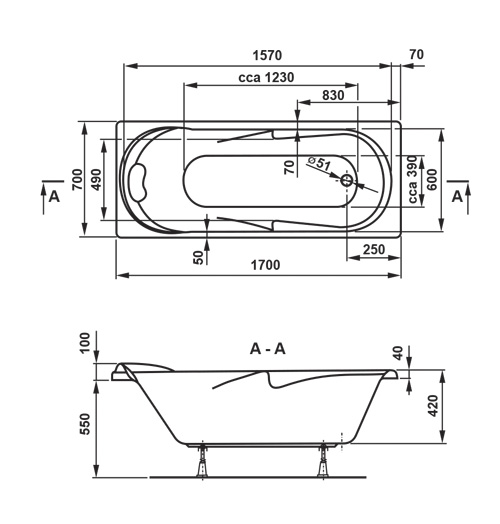 Анатомическая ванна с боковым изгибами для рук. Объем 180 л.