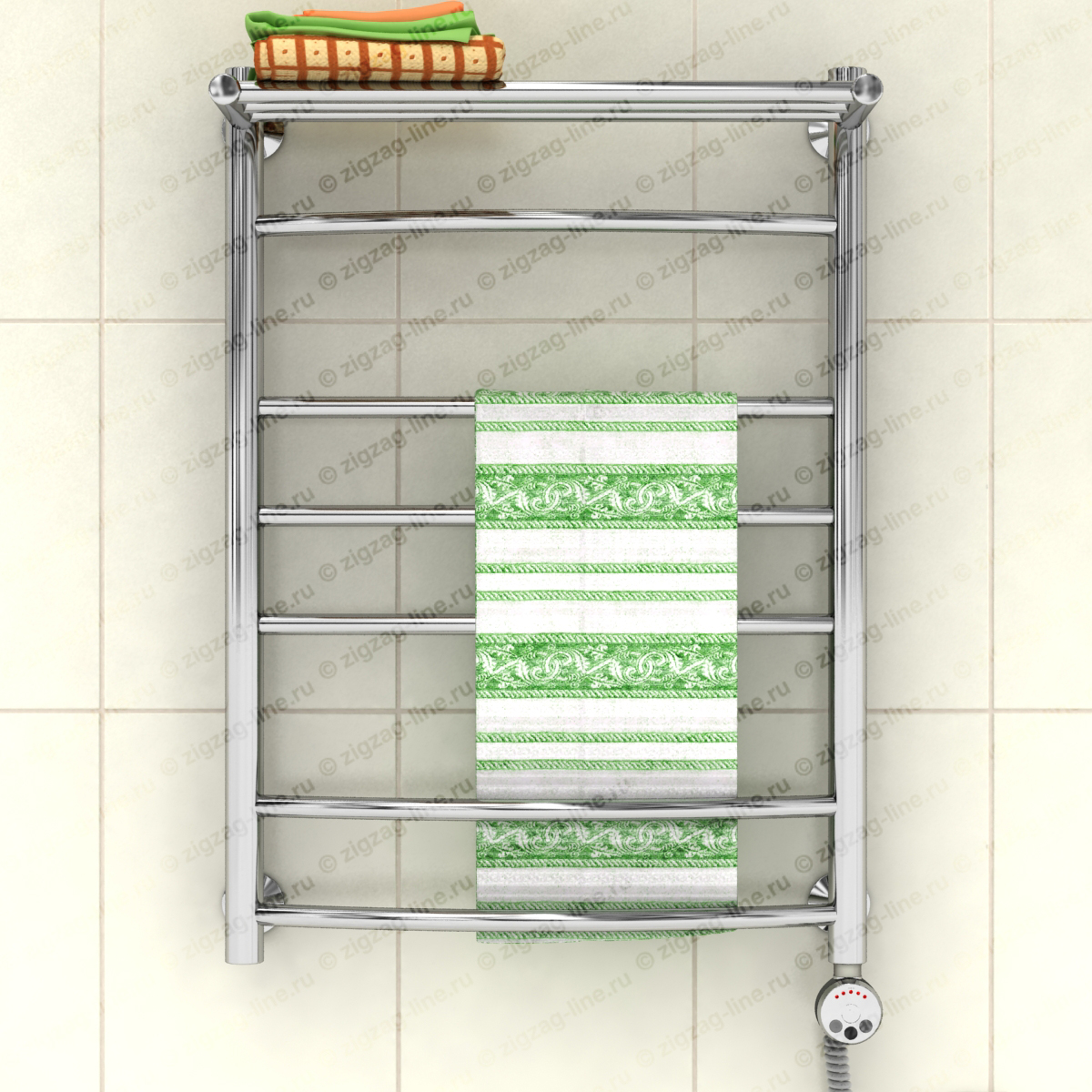 Электрический полотенцесушитель с полкой, тип лесенка. Изготовлен из нержавеющей стали, предназначен для сушки текстильных изделий или иных предметов, обогрева ванных, душевых комнат и других помещений. Электрические полотенцесушители снабжены ступенчатым терморегулятором с функцией автоматического поддержания заданной температуры, что обеспечивает удобство в использовании и малое потребление электроэнергии. Электрические полотенцесушители, пожалуй, самый удобный вариант относительно размещения и монтажа, поскольку совершенно независимы от системы гвс. Подключение осуществляется к электросети стандарта 220В 50Гц. Процесс установки не требует специальных навыков.
