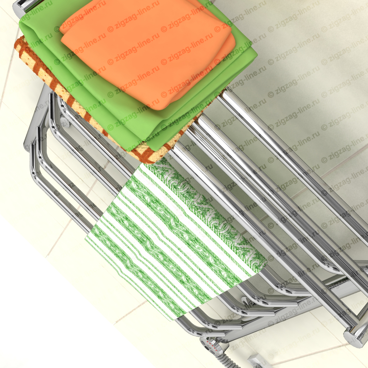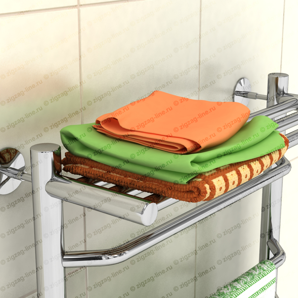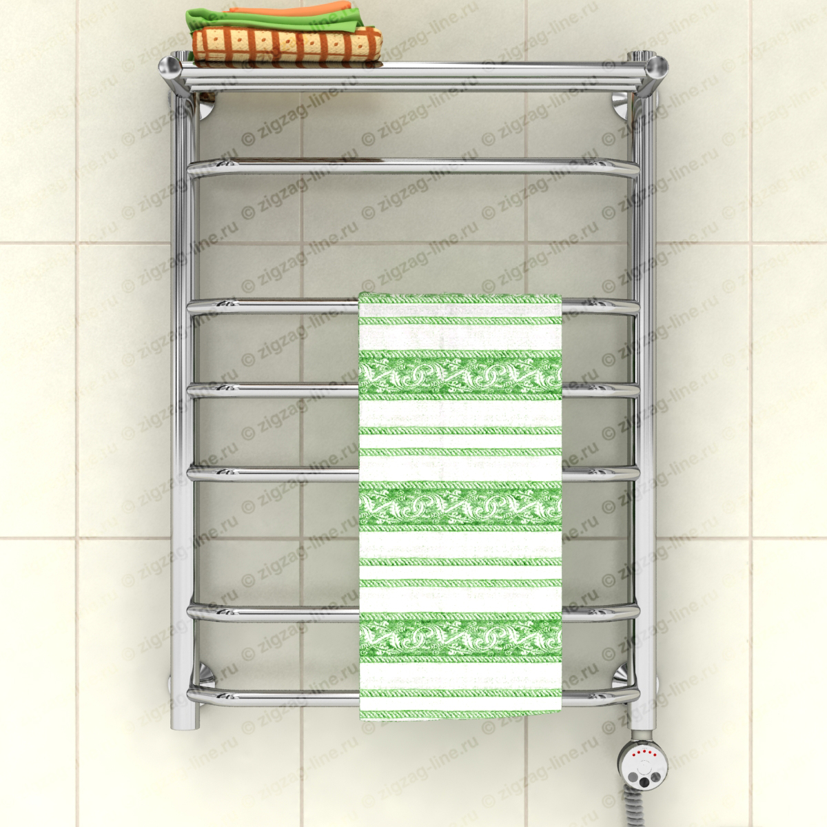 Электрический полотенцесушитель с полкой, тип лесенка. Изготовлен из нержавеющей стали, предназначен для сушки текстильных изделий или иных предметов, обогрева ванных, душевых комнат и других помещений. Электрические полотенцесушители снабжены ступенчатым терморегулятором с функцией автоматического поддержания заданной температуры, что обеспечивает удобство в использовании и малое потребление электроэнергии. Электрические полотенцесушители, пожалуй, самый удобный вариант относительно размещения и монтажа, поскольку совершенно независимы от системы гвс. Подключение осуществляется к электросети стандарта 220В 50Гц. Процесс установки не требует специальных навыков.