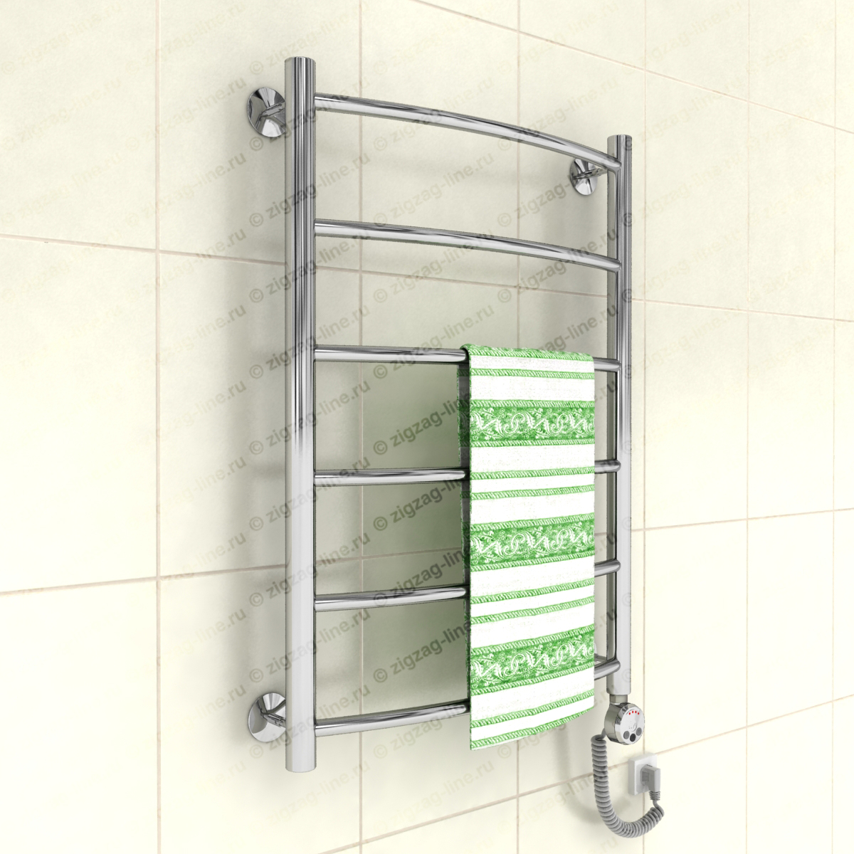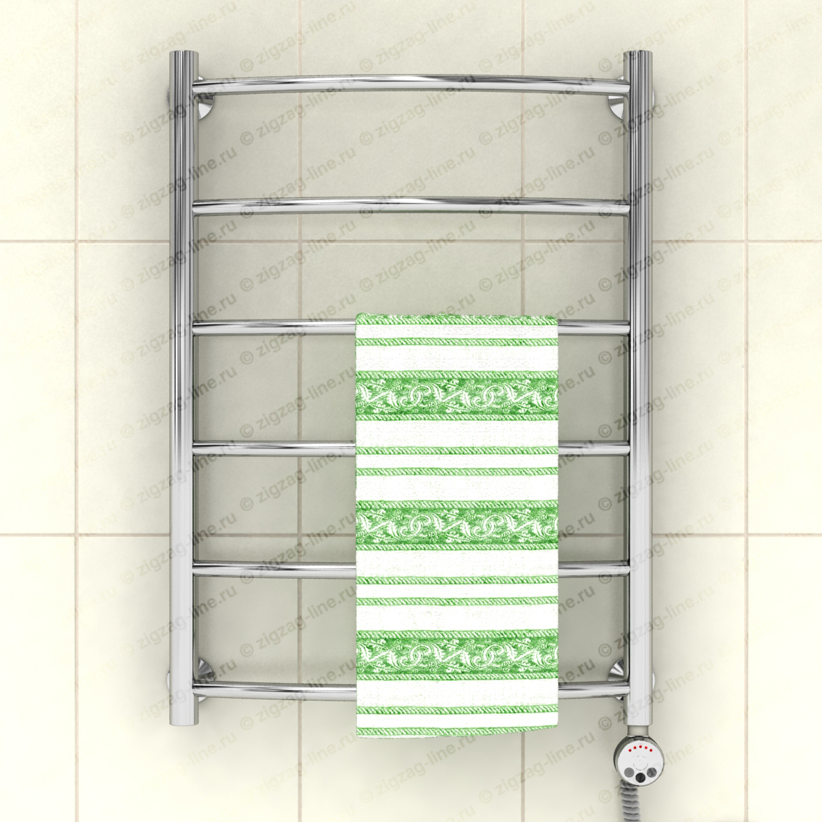 Электрический полотенцесушитель, тип лесенка. Изготовлен из нержавеющей стали, предназначен для сушки текстильных изделий или иных предметов, обогрева ванных, душевых комнат и других помещений. Электрические полотенцесушители снабжены ступенчатым терморегулятором с функцией автоматического поддержания заданной температуры, что обеспечивает удобство в использовании и малое потребление электроэнергии. Электрические полотенцесушители, пожалуй, самый удобный вариант относительно размещения и монтажа, поскольку совершенно независимы от системы гвс. Подключение осуществляется к электросети стандарта 220В 50Гц. Процесс установки не требует специальных навыков.