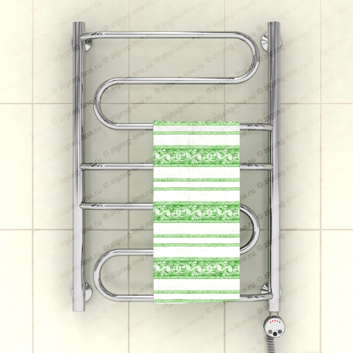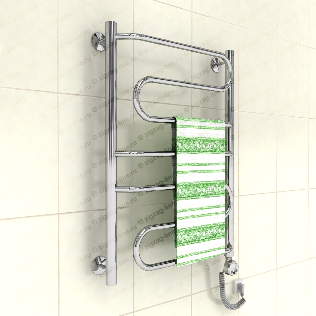 Электрический полотенцесушитель, тип лесенка. Изготовлен из нержавеющей стали, предназначен для сушки текстильных изделий или иных предметов, обогрева ванных, душевых комнат и других помещений. Электрические полотенцесушители снабжены ступенчатым терморегулятором с функцией автоматического поддержания заданной температуры, что обеспечивает удобство в использовании и малое потребление электроэнергии. Электрические полотенцесушители, пожалуй, самый удобный вариант относительно размещения и монтажа, поскольку совершенно независимы от системы гвс. Подключение осуществляется к электросети стандарта 220В 50Гц. Процесс установки не требует специальных навыков.
