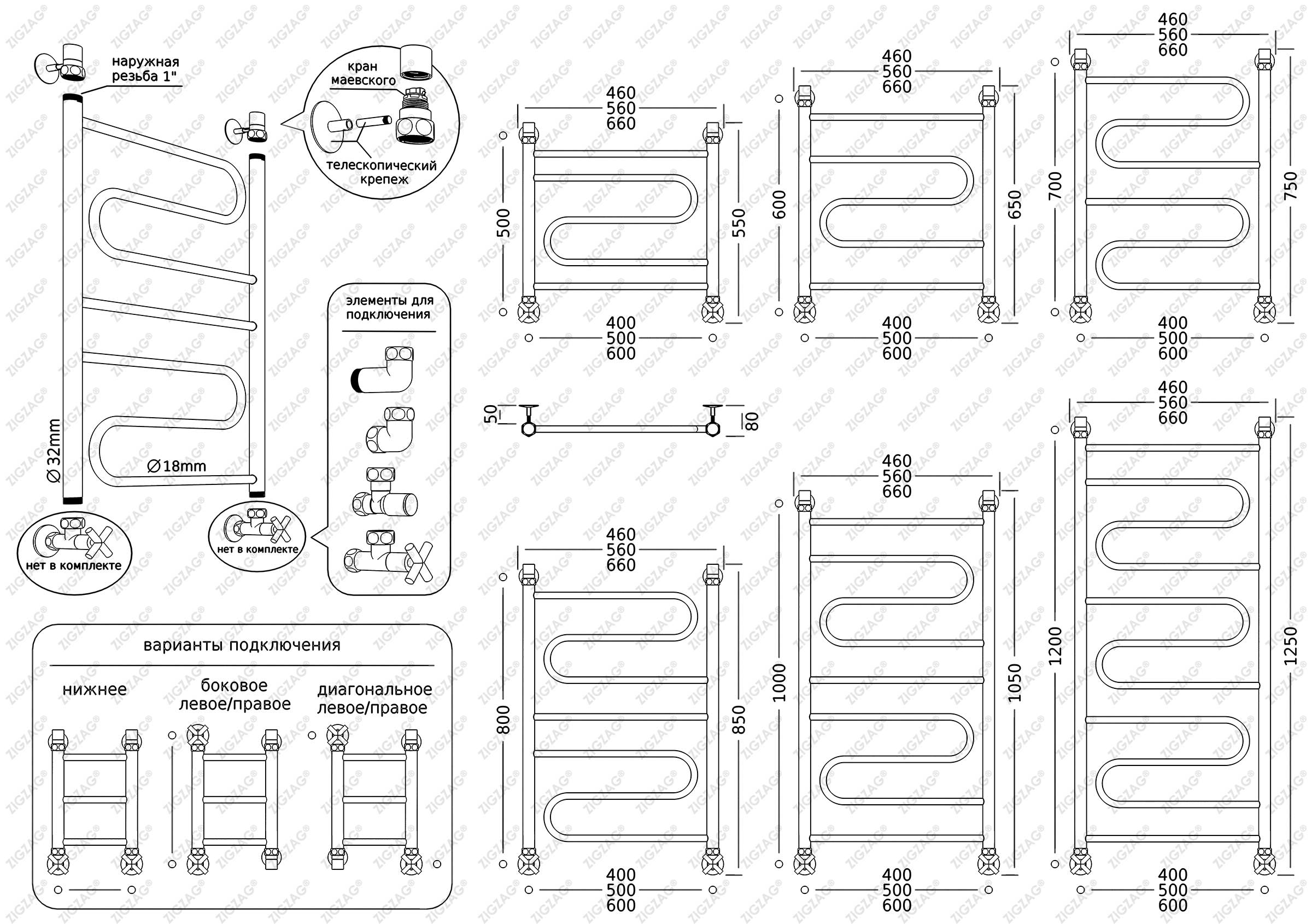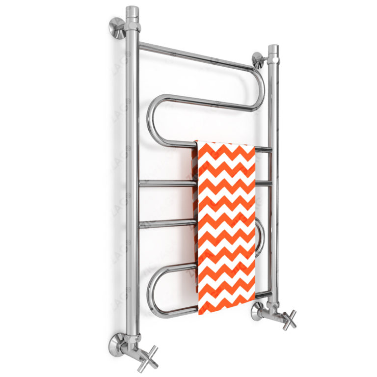 Водяной полотенцесушитель, тип лесенка. Изготовлен из нержавеющей стали, предназначен для сушки текстильных изделий или иных предметов, обогрева ванных, душевых комнат и других помещений. Подключается к системе гвс или отопления. Варианты подключения — нижнее, боковое, по диагонали. Размеры указаны по подключению.