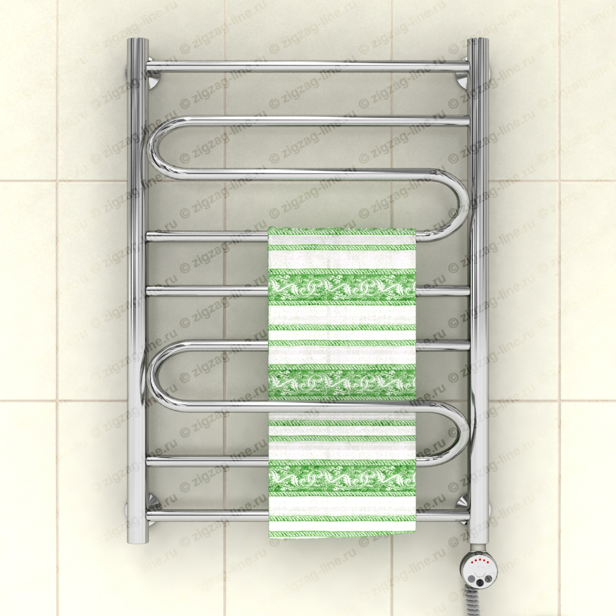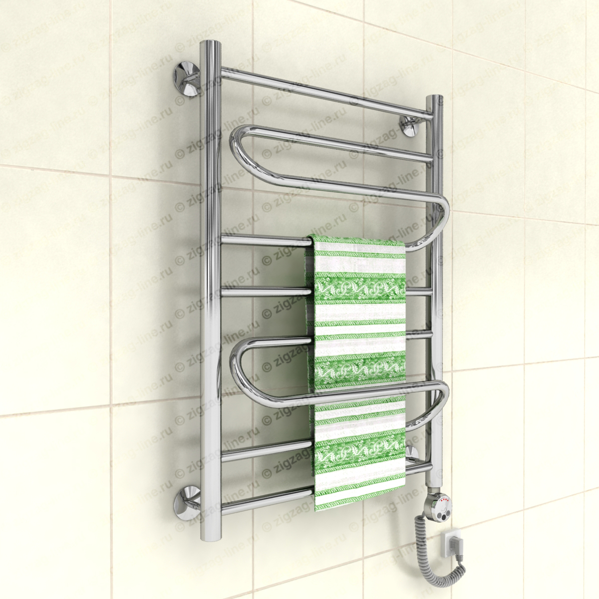 Электрический полотенцесушитель, тип лесенка. Изготовлен из нержавеющей стали, предназначен для сушки текстильных изделий или иных предметов, обогрева ванных, душевых комнат и других помещений. Электрические полотенцесушители снабжены ступенчатым терморегулятором с функцией автоматического поддержания заданной температуры, что обеспечивает удобство в использовании и малое потребление электроэнергии. Электрические полотенцесушители, пожалуй, самый удобный вариант относительно размещения и монтажа, поскольку совершенно независимы от системы гвс. Подключение осуществляется к электросети стандарта 220В 50Гц. Процесс установки не требует специальных навыков.