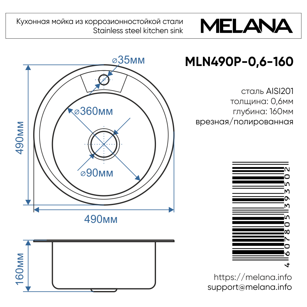 Кухонная мойка MELANA, нержавеющая сталь, 248(*20)