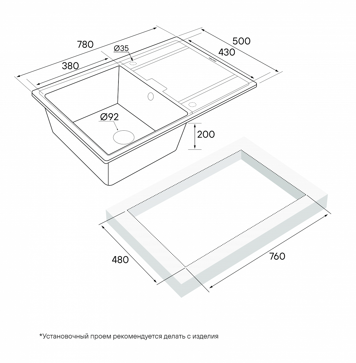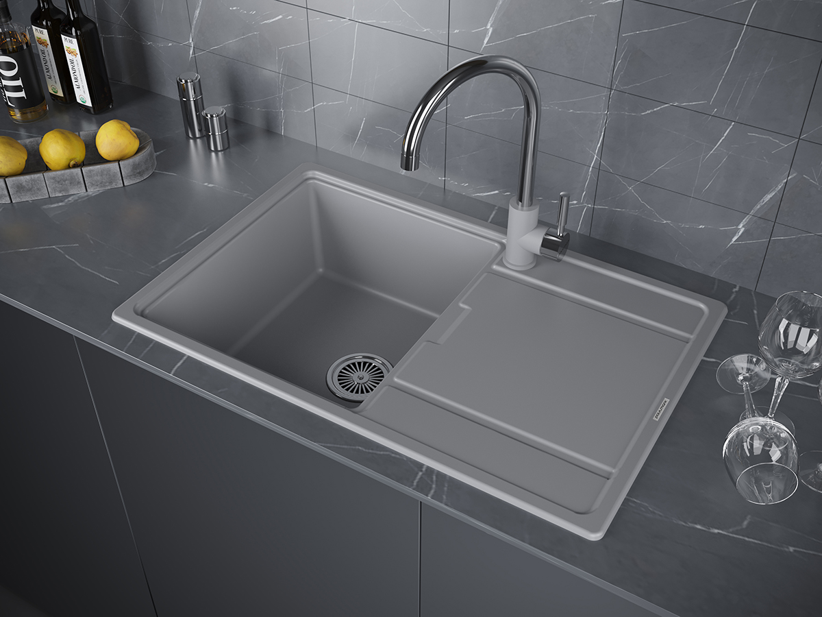 Материал мойки устойчив к механическим повреждениям, а также выдерживает температуру до 180 градусов.