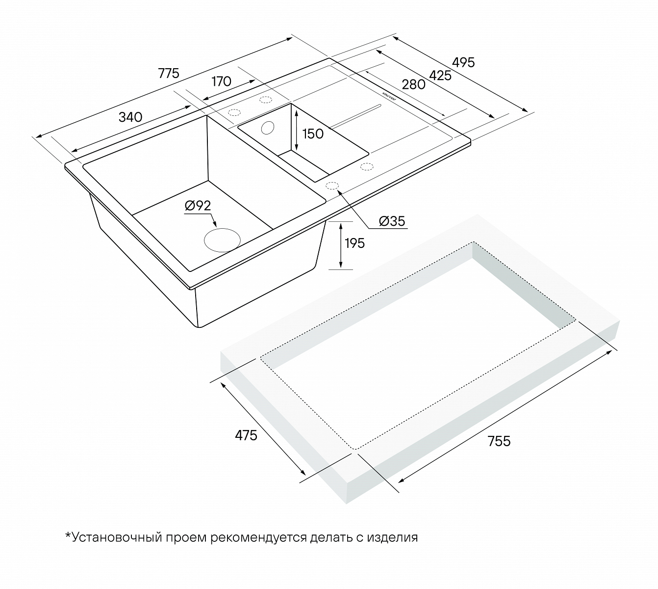 Материал мойки устойчив к механическим повреждениям, а также выдерживает температуру до 180 градусов.