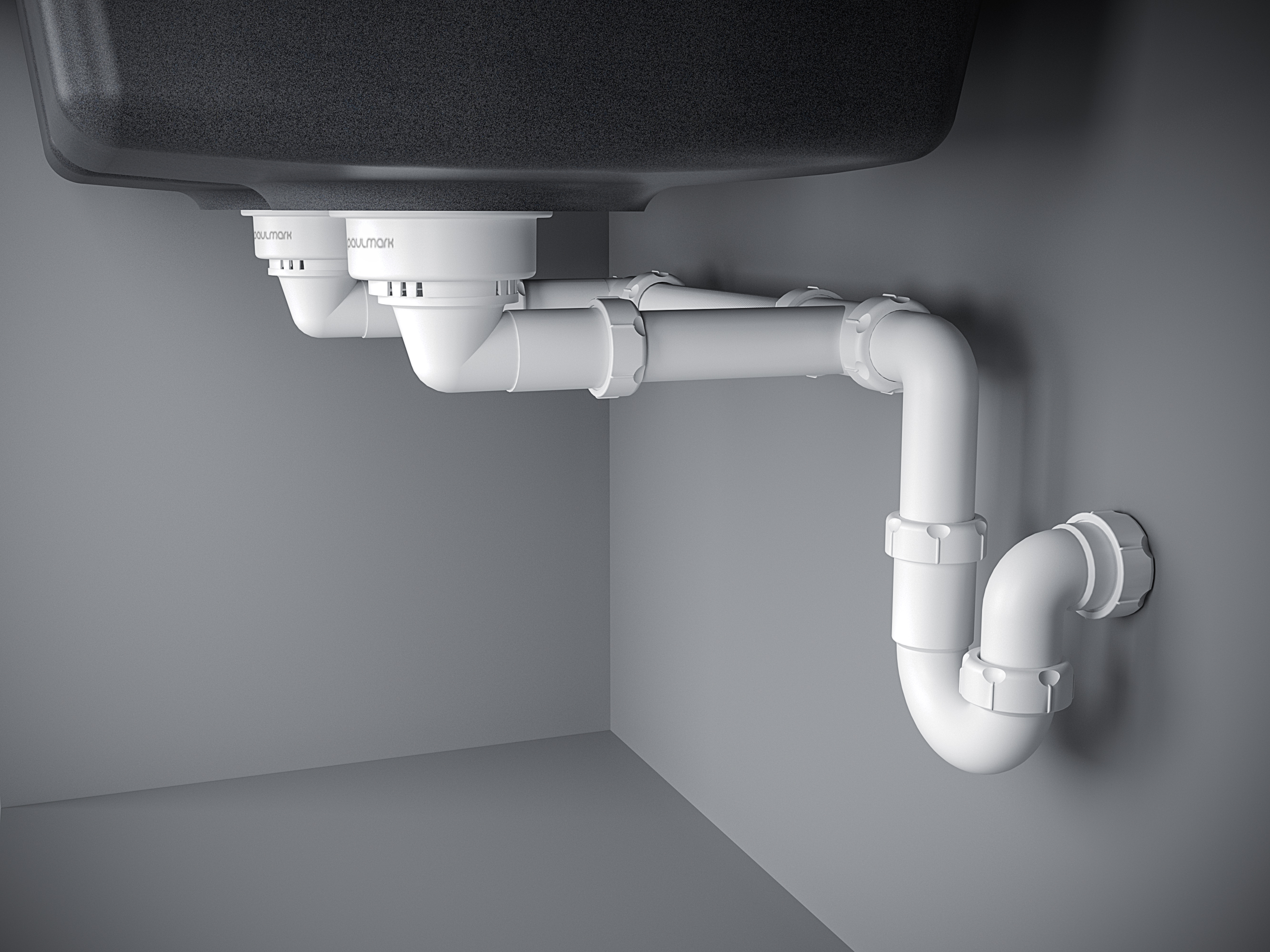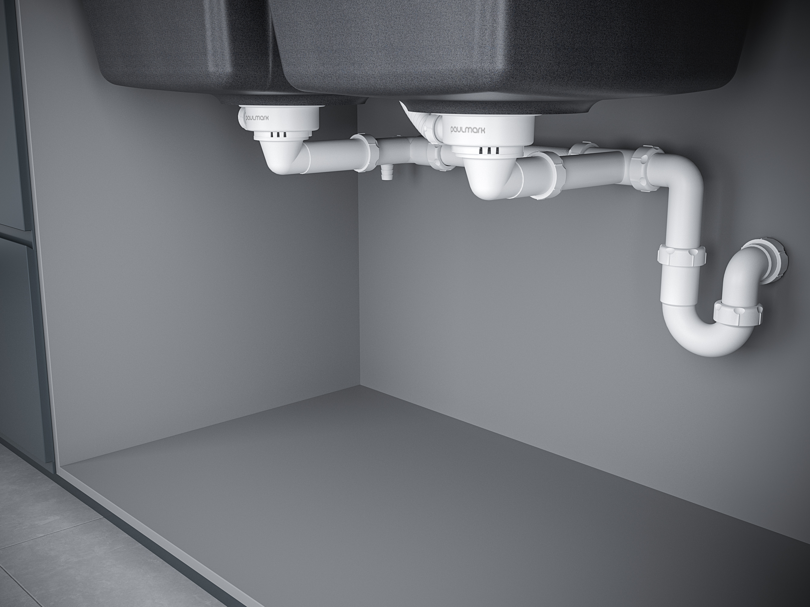 Входит в комплект. Его конструкция позволяет увести колбу к стене, что кратно увеличит свободное пространство под умывальником.