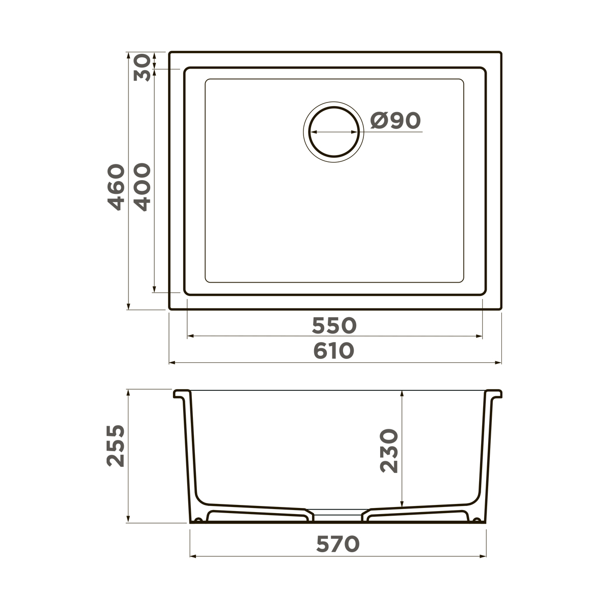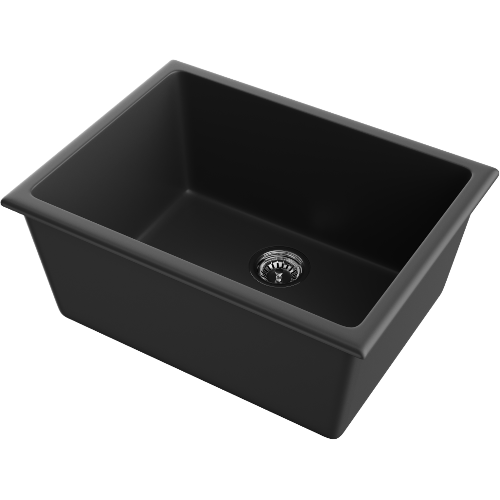 Форма с одной чашей делает модель универсальной и понятной в работе. Глубина 25,5 см позволяет без проблем мыть крупную посуду, кастрюли и противни, не сталкиваясь с постоянными брызгами на столешнице. Размеры мойки — 61×46 см — подходят как для просторных, так и для более компактных кухонь, не перегружая рабочую зону.