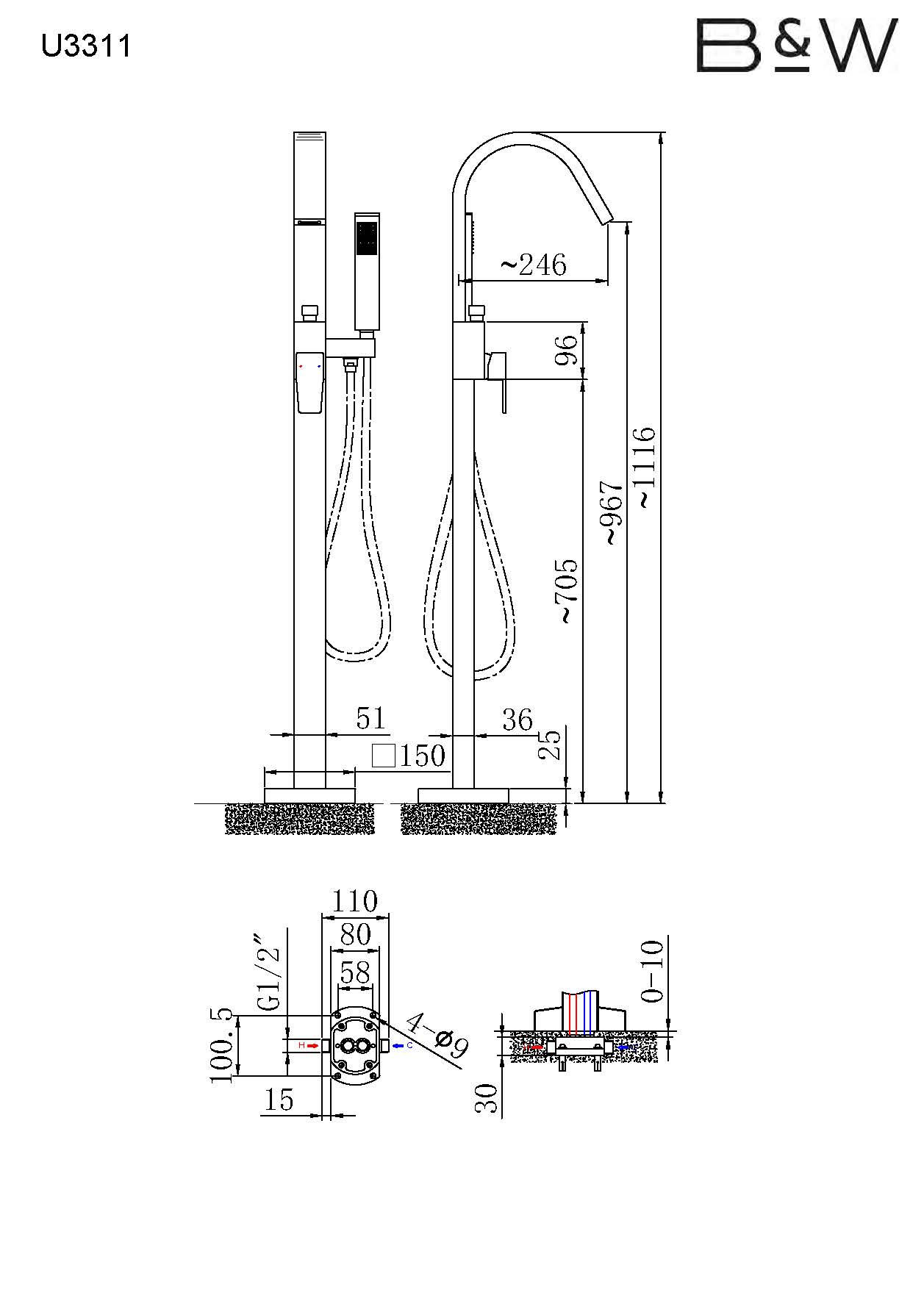 • Смеситель напольный однорычажный • Картридж керамический CITEC • Аэратор стандартный • Материал: Латунь EN 59-1 • Цвет: хром • Длина излива 246 мм • Ручная лейка • Душевой шланг 1500 мм • Внутренняя часть в комплекте • Подводка 1/2"