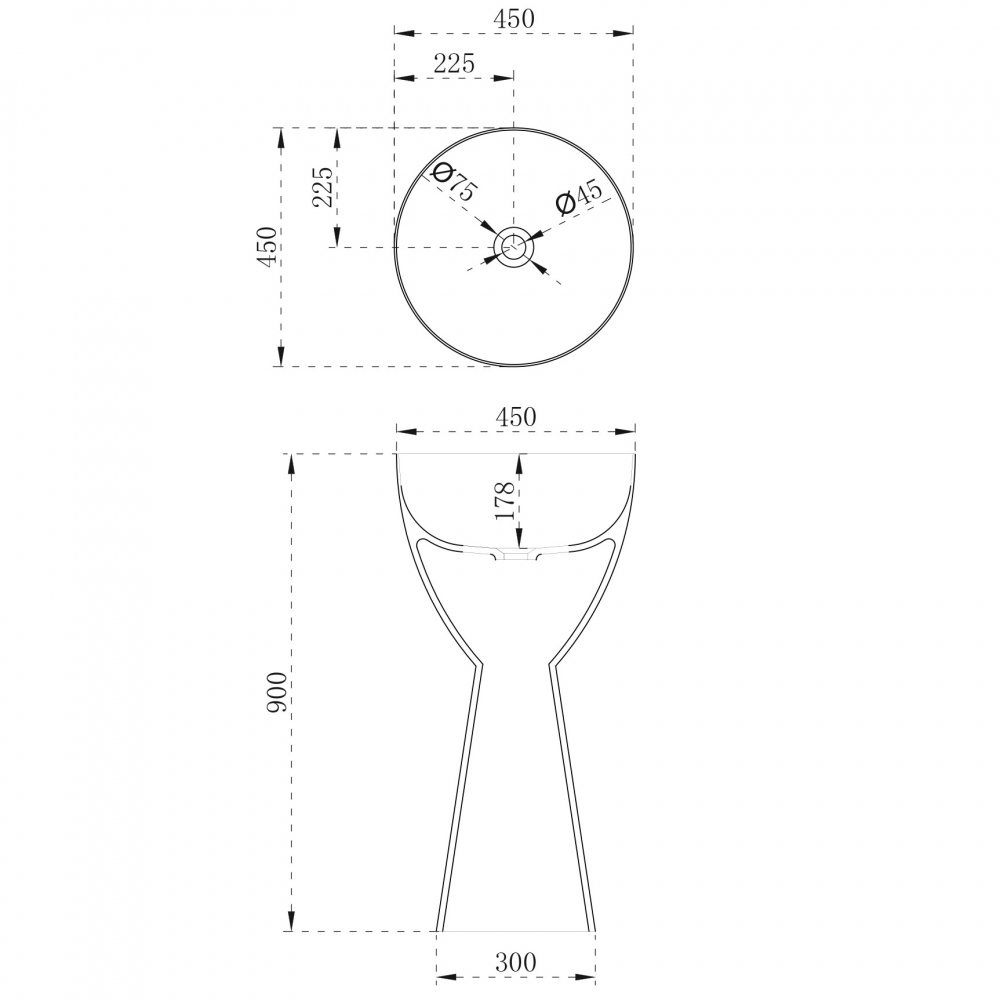 Раковина напольная Abber Stein, AS2507, 45 см