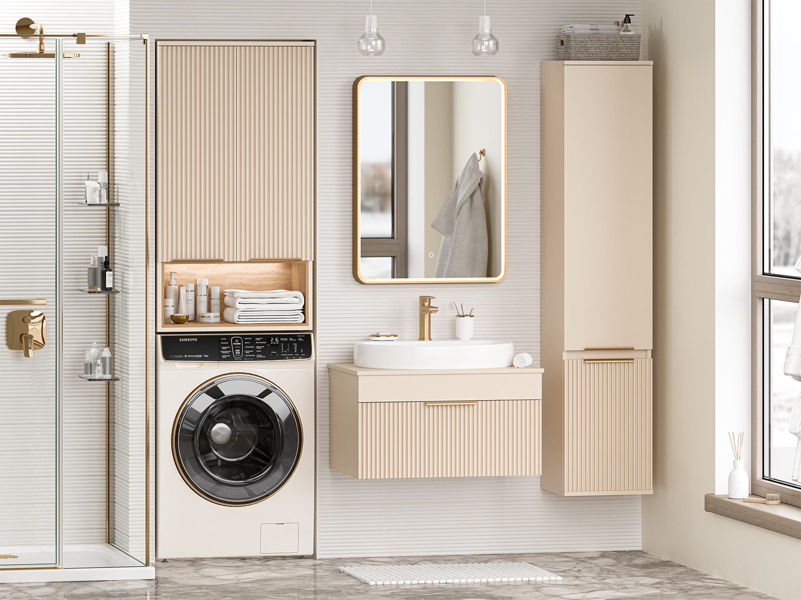 Шкаф над стиральной машиной Misty Enfida, 60 см, бежевый, ENF-08060-031