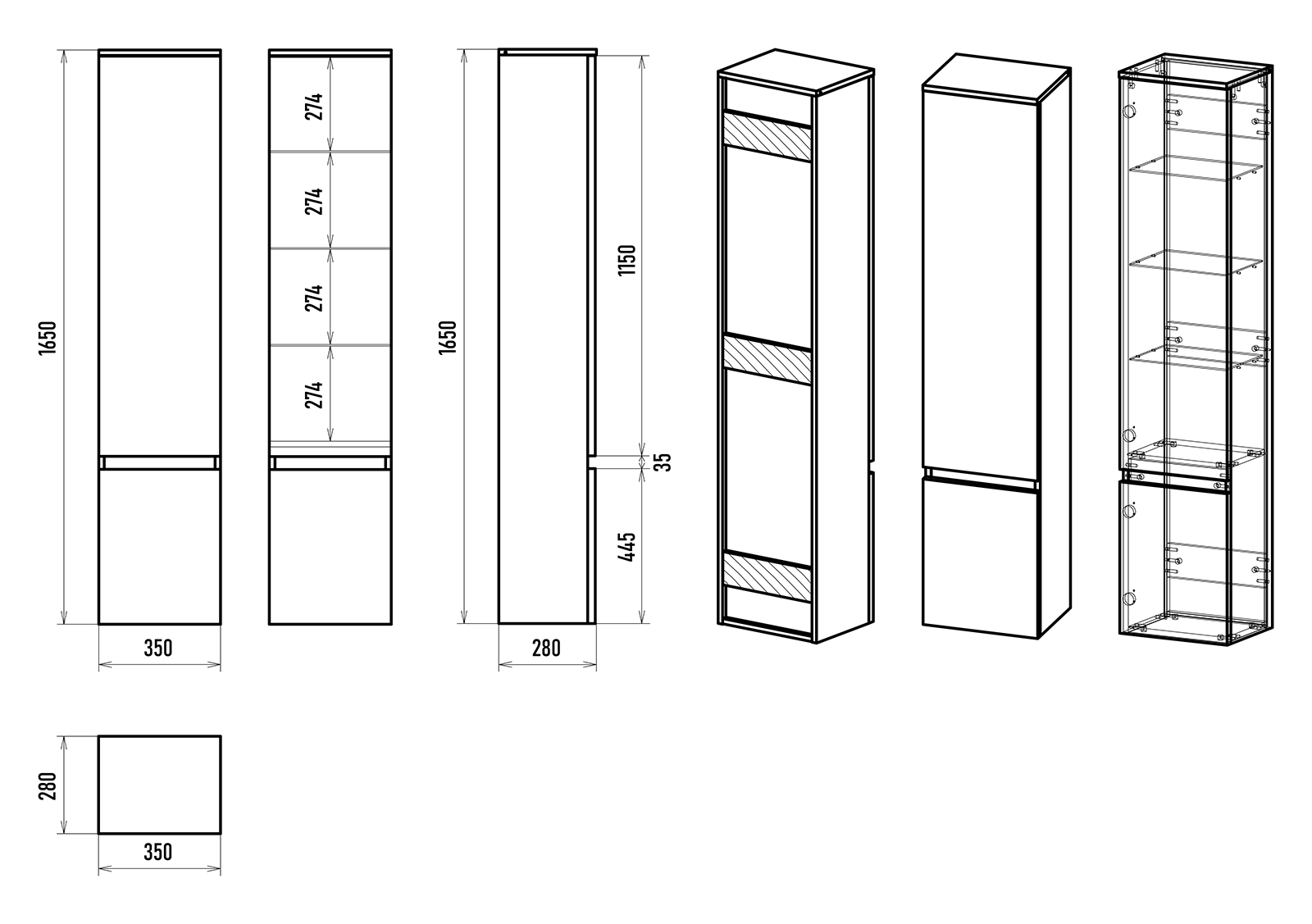 Шкаф-пенал Misty Victory, 35 см, белый, VIC-05035-010L