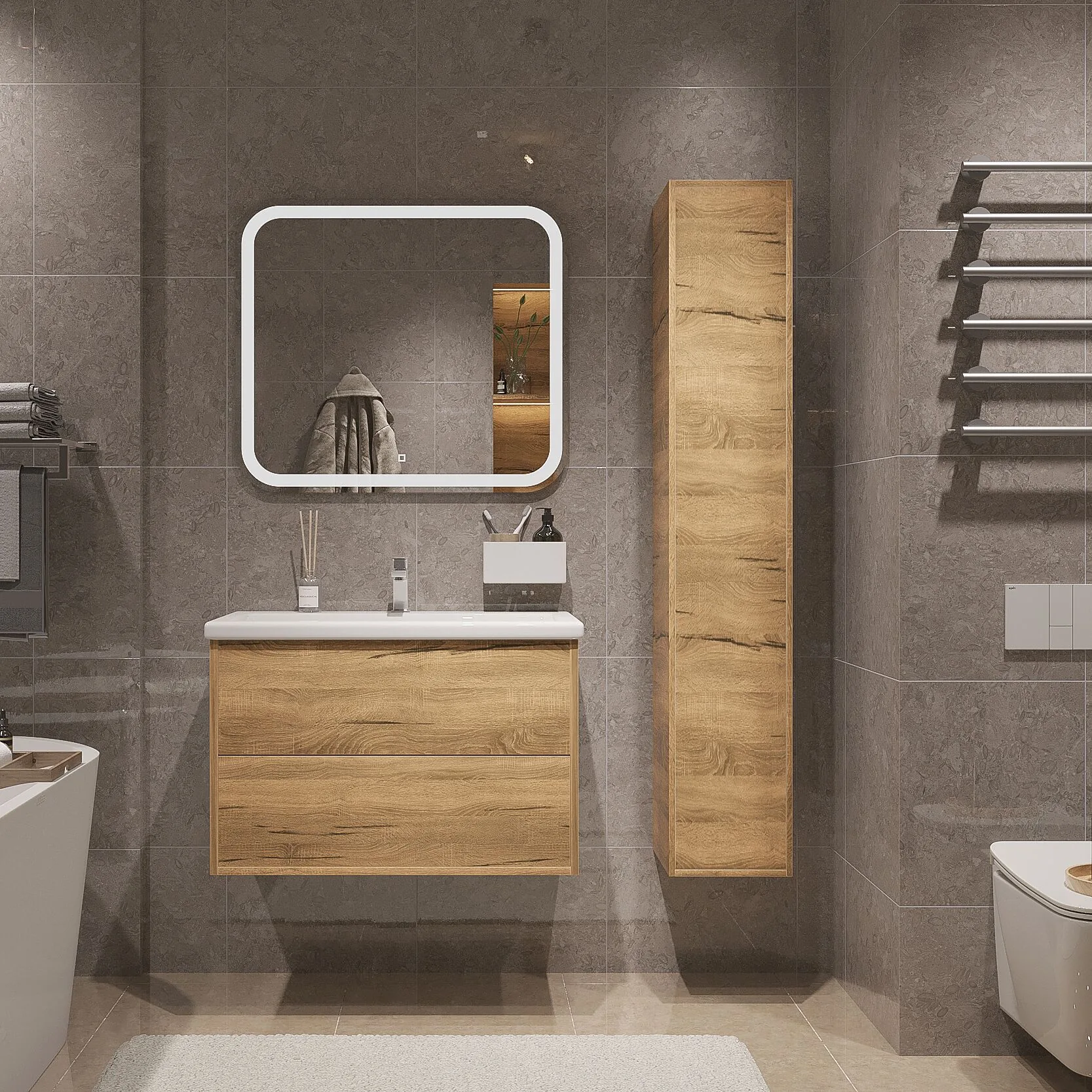 В комплекте Шкаф-пенал, осн крепление к стене, фурнитура, паспорт