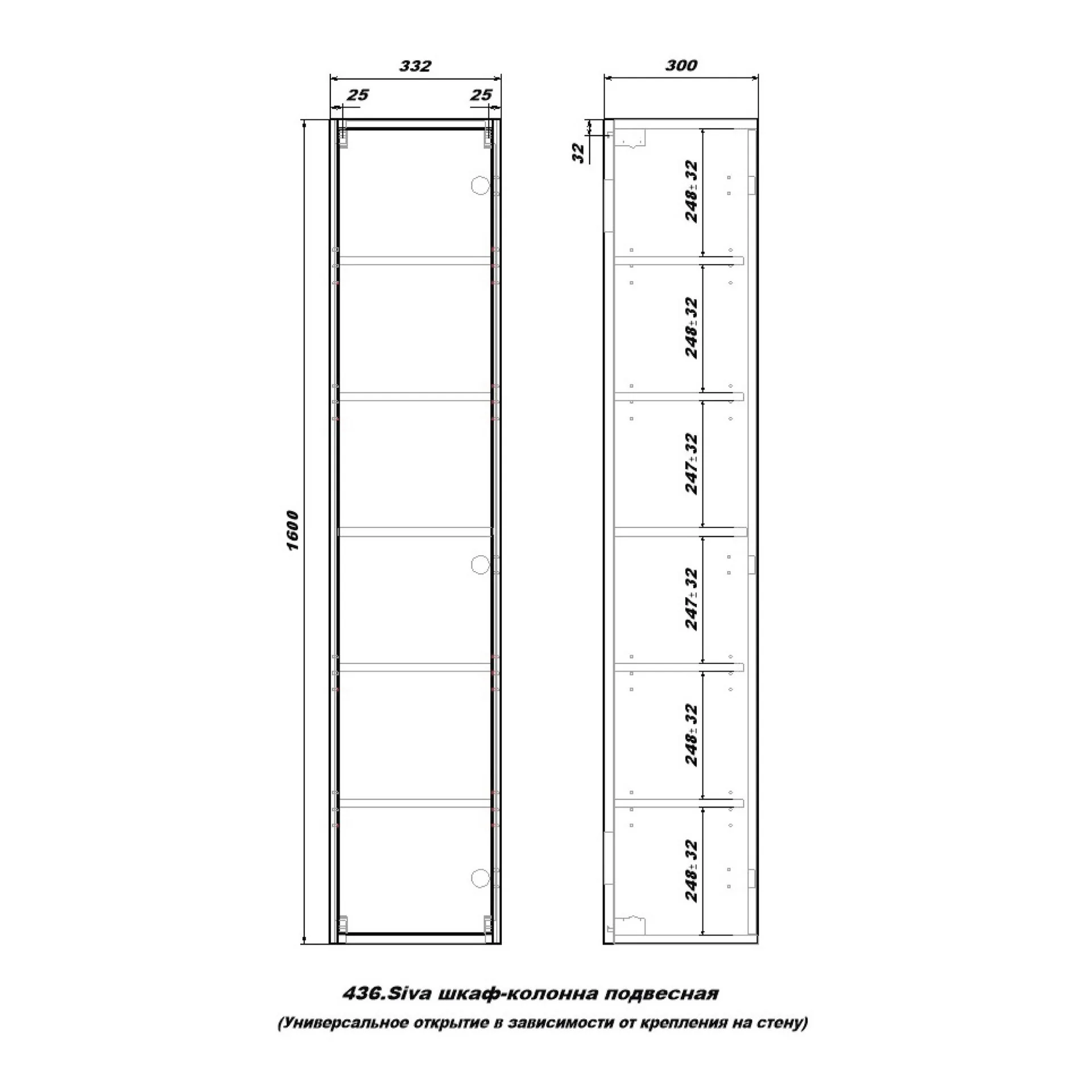 Шкаф-пенал Sanstar Siva, 33 см, 436.1-3.4.1.В
