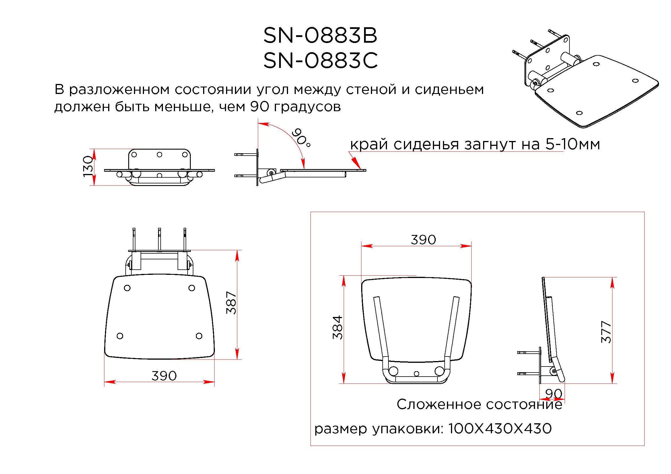Складное сиденье для крепления на стену Black&White SN-0883C