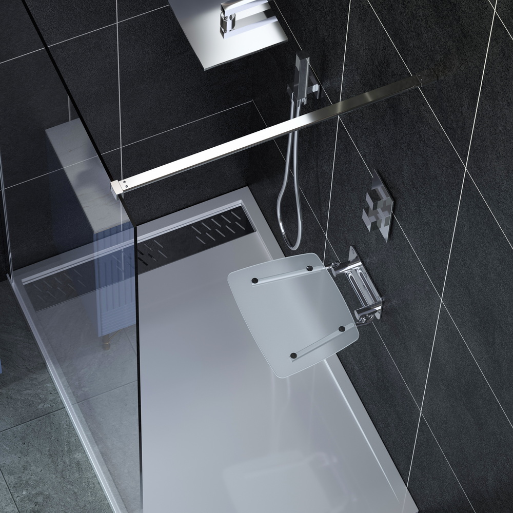 • Акриловое сиденье 10 мм • Возможно использование в душевых ограждениях и кабинах (нагрузка до 150 кг) • Материал: нержавеющая сталь • Покрытие: цвет хром глянцевый