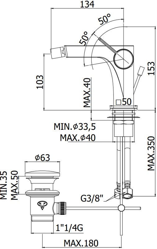 Смеситель для биде Paffoni Rock, хром, RO135CR