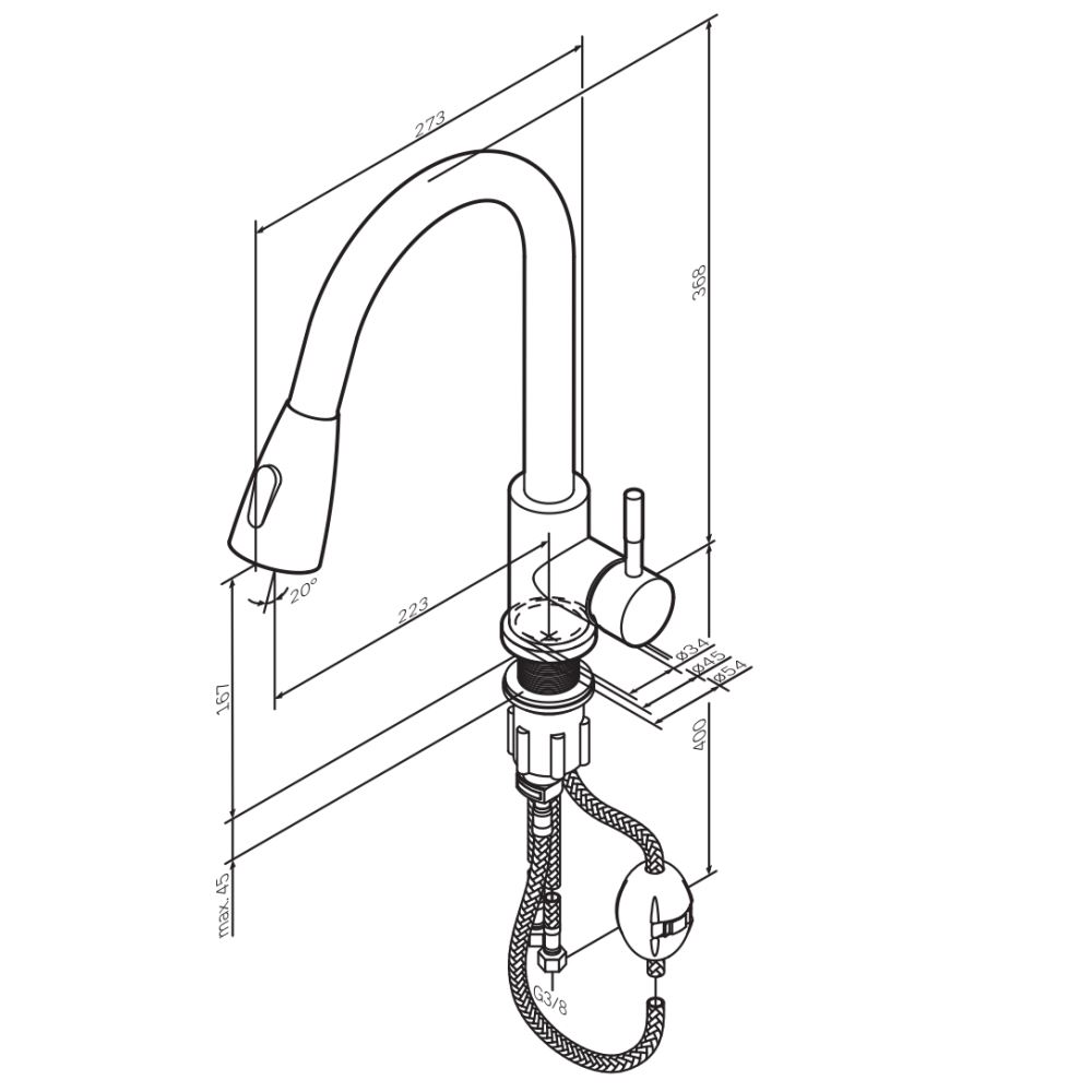 Высота излива (мм) 167