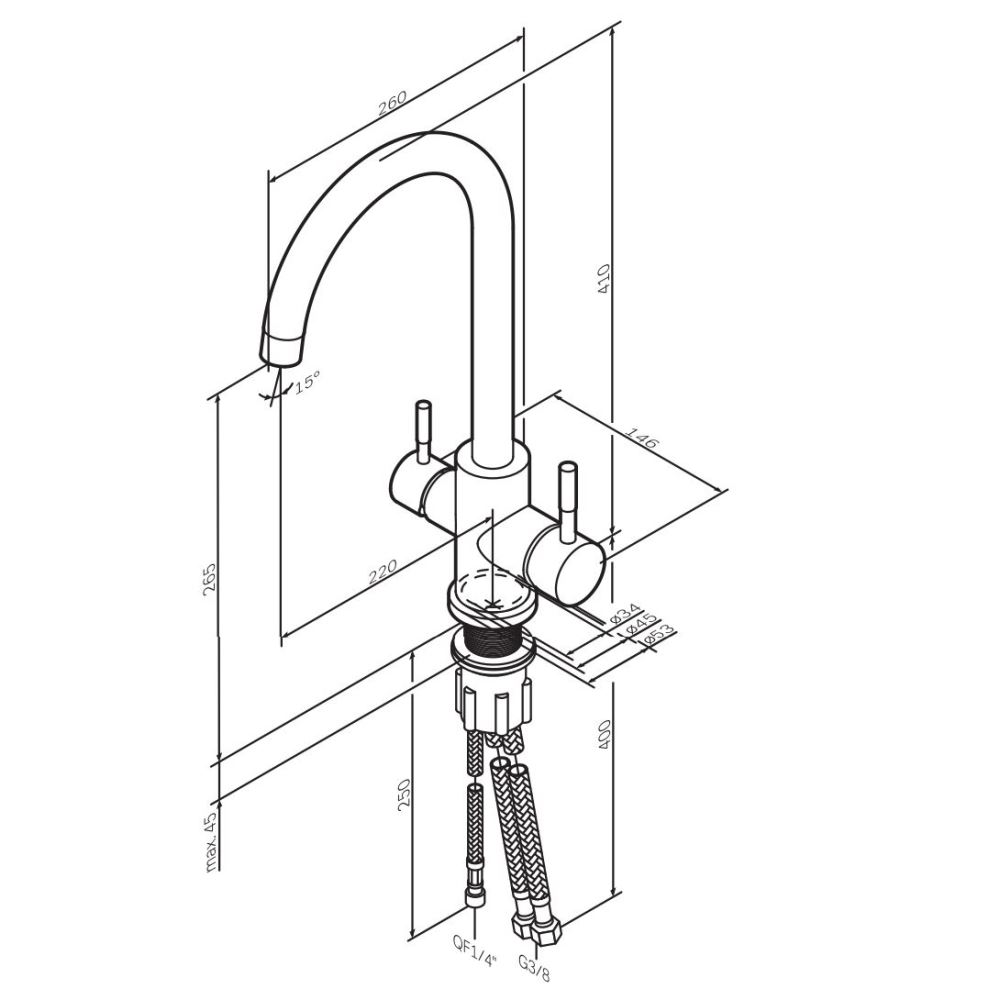 Высота излива (мм) 265