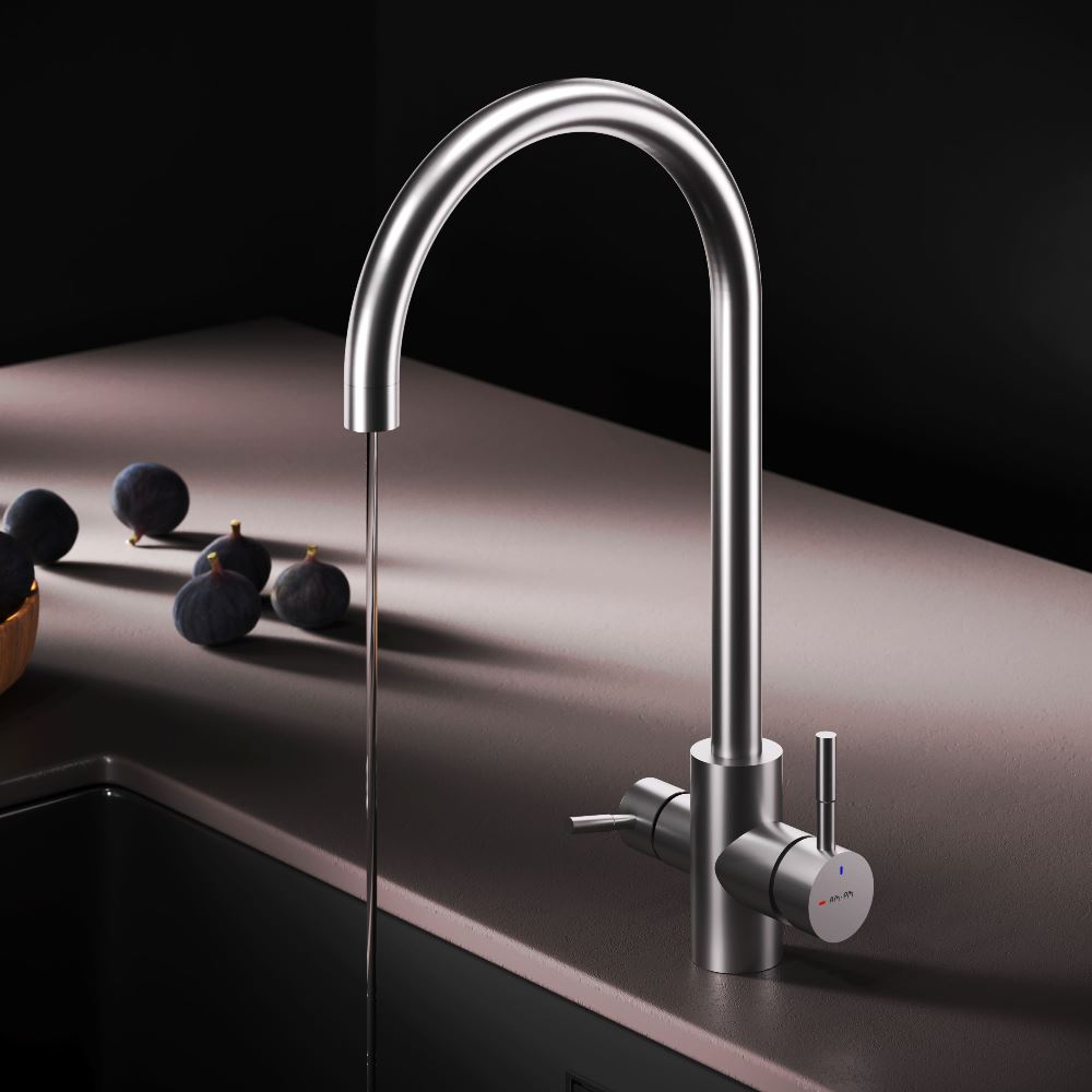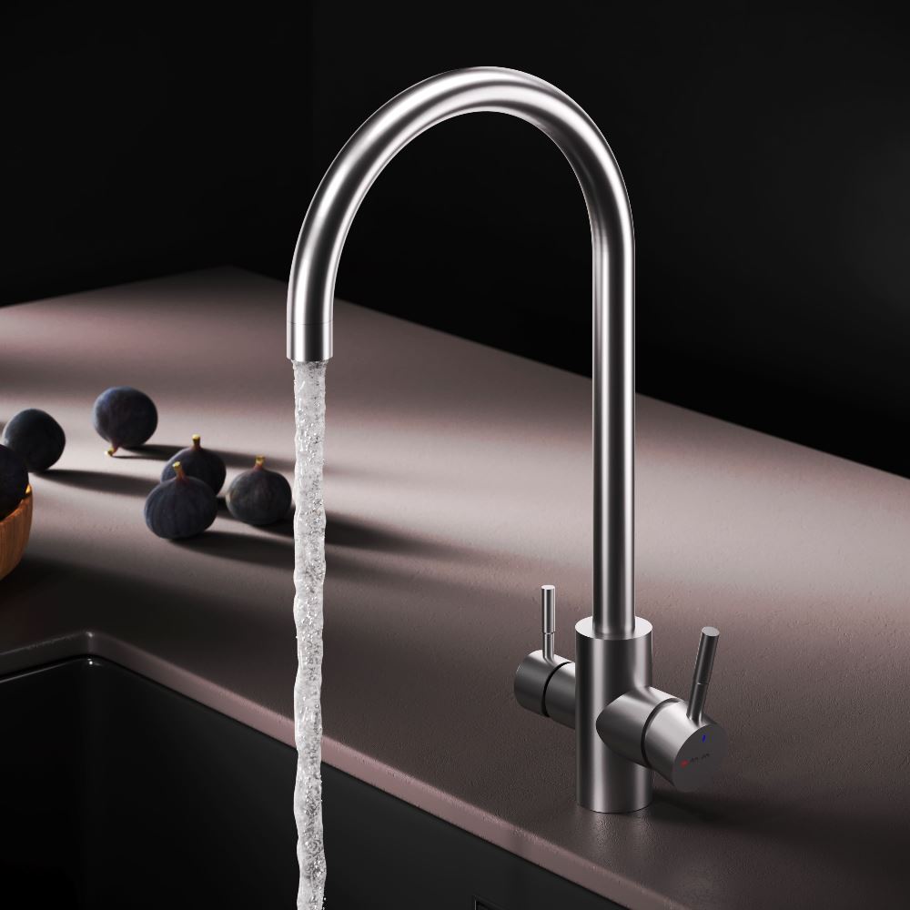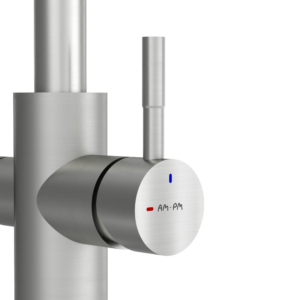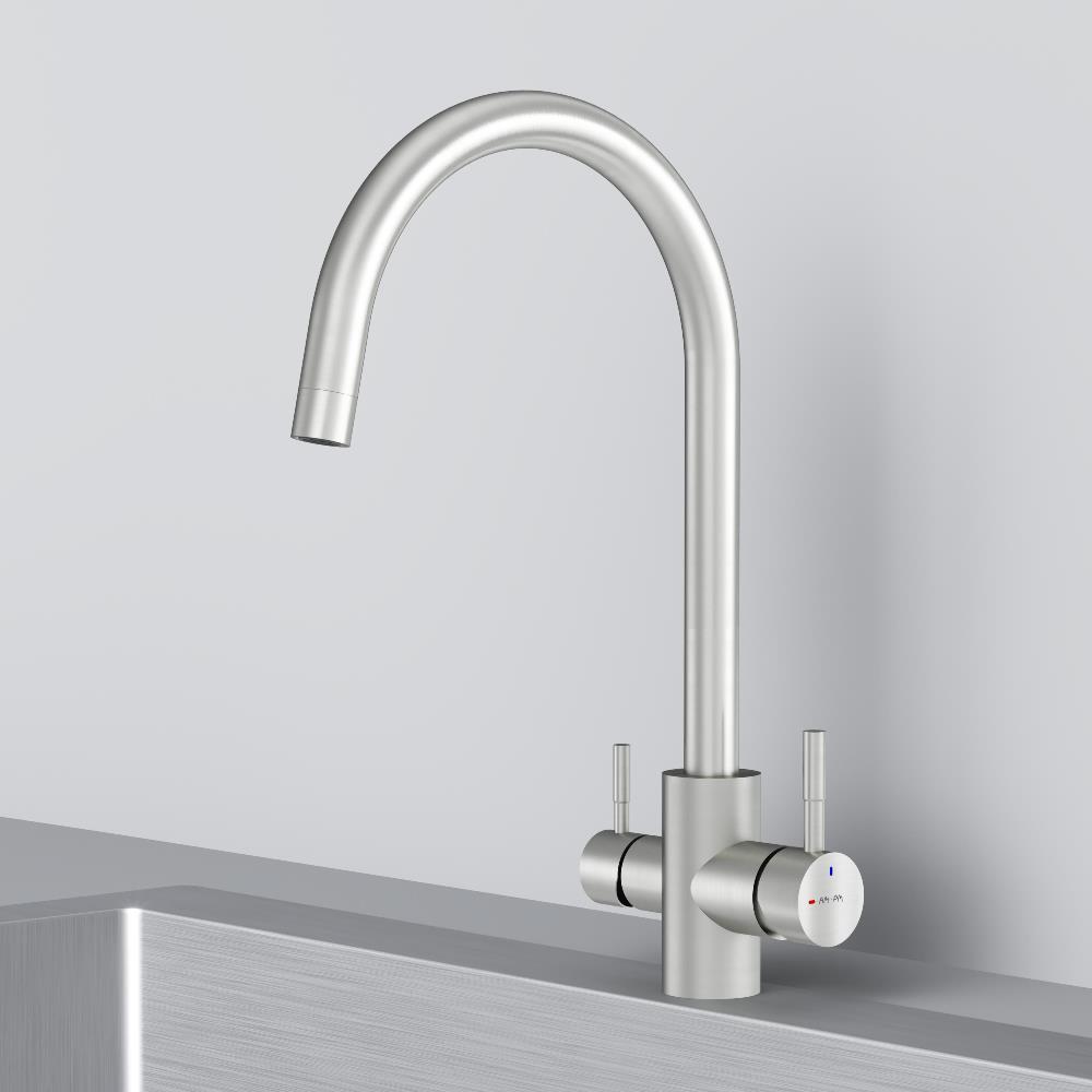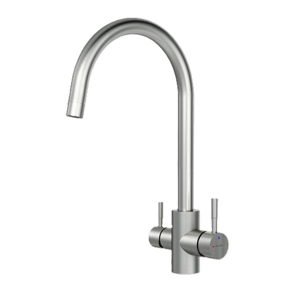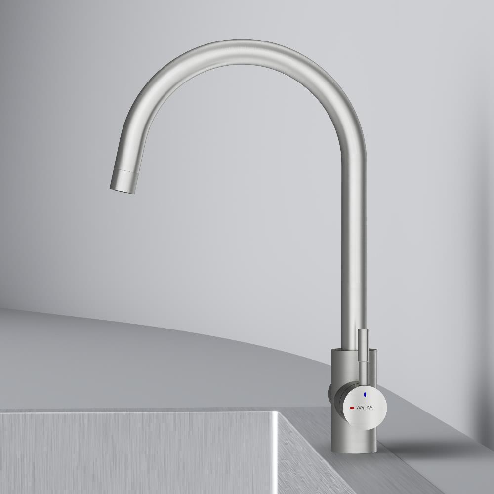 Встречайте пополнение экстраординарной коллекции X-Joy S – кухонные смесители с каналом для питьевой воды и функцией EcoStart. Эргономичный дизайн продуктов был разработан собственной дизайн-студией AM.PM в Германии. Смеситель оснащен встроенным каналом для питьевой воды. Для получения питьевой воды воспользуйтесь ручкой, расположенной с левой стороны корпуса, для получения обычной воды, просто управляйте смесителем привычным способом. Функция EcoStart —стильное и экологичное решение для вашего дома. При включении смесителя в центральном положении автоматически потечет холодная вода. Для включения горячей воды – необходимо повернуть ручку влево. Поворот ручки вправо заблокирован. Оптимизация диапазона действия ручки смесителя сокращает нерациональный расход воды до 40% в месяц. EcoStart сочетает удобство использования с экономией ресурсов, заботясь не только о вашем бюджете, но и об окружающей среде. Эксклюзивное покрытие Everlast – вдвое превышает отраслевые стандарты по прочности и износостойкости. Сатиновый цвет сделает этот смеситель главным акцентом в любом интерьере.