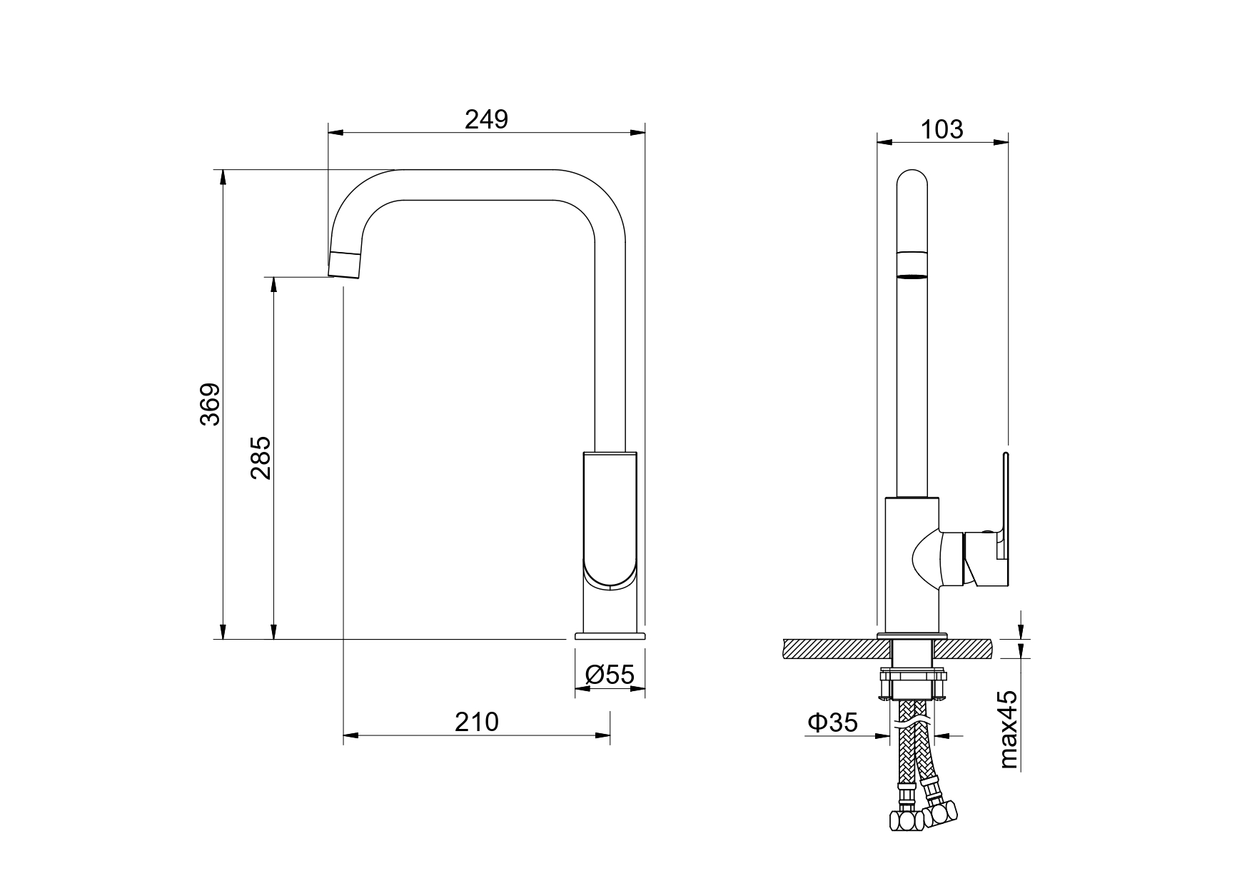 Форма излива П-образный