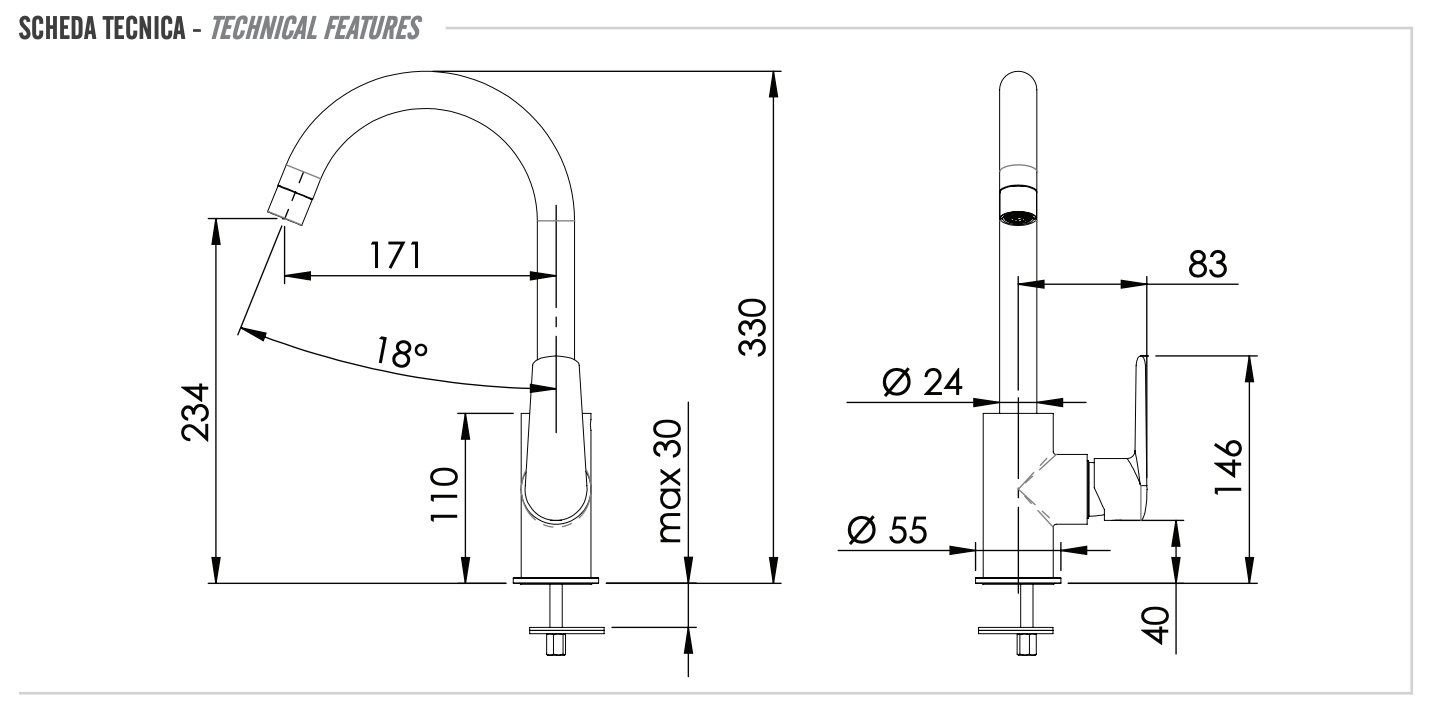 Смеситель для кухни Remer Rubinetterie Vanity поворотный, V72