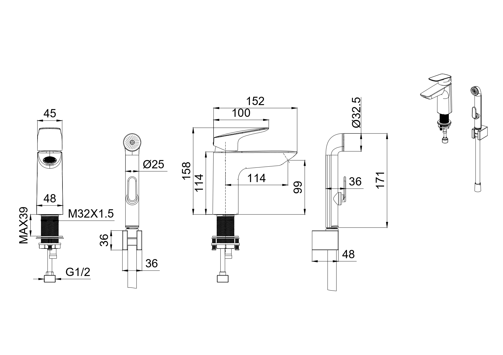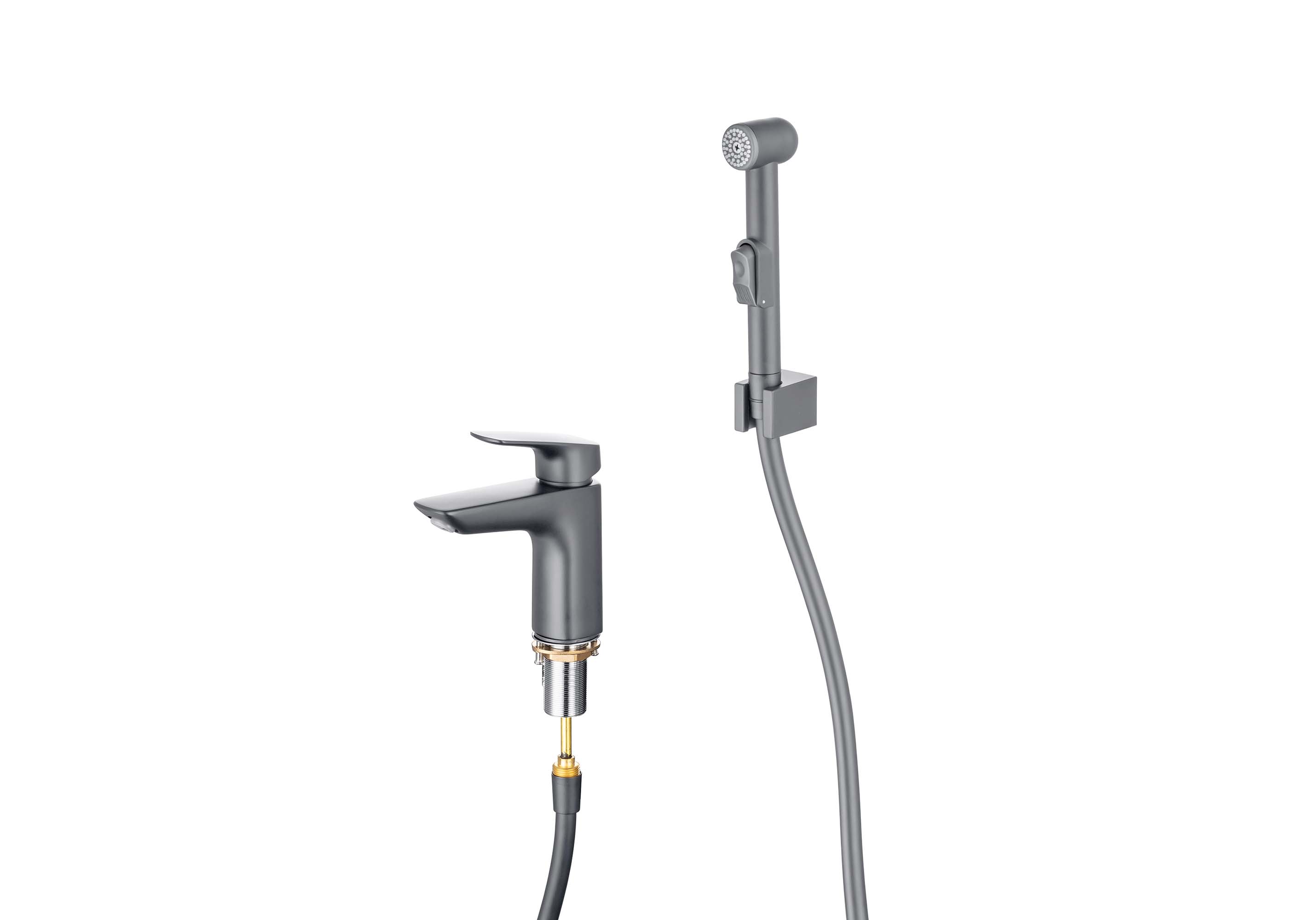 Смеситель для раковины с гигиеническим душем Aquatek Вега, оружейная сталь, AQ1012BGM