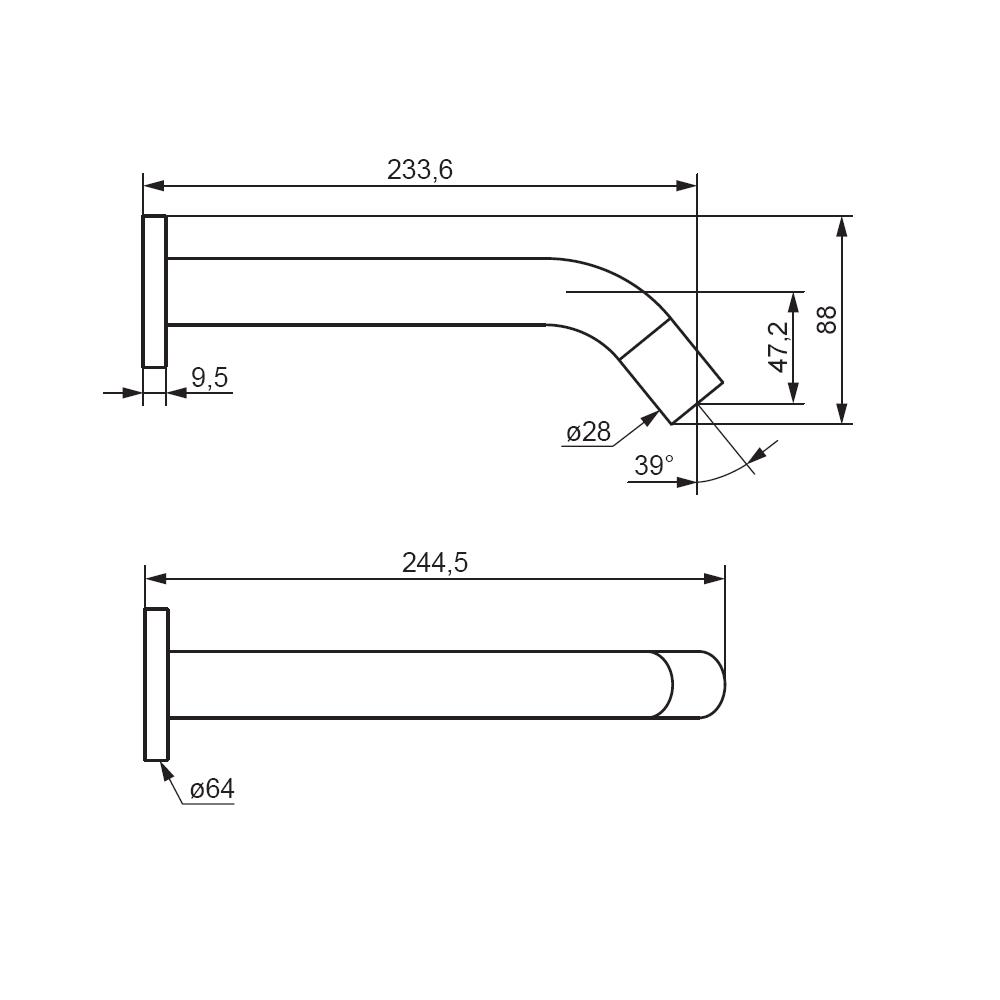 Длина излива, см 233,6