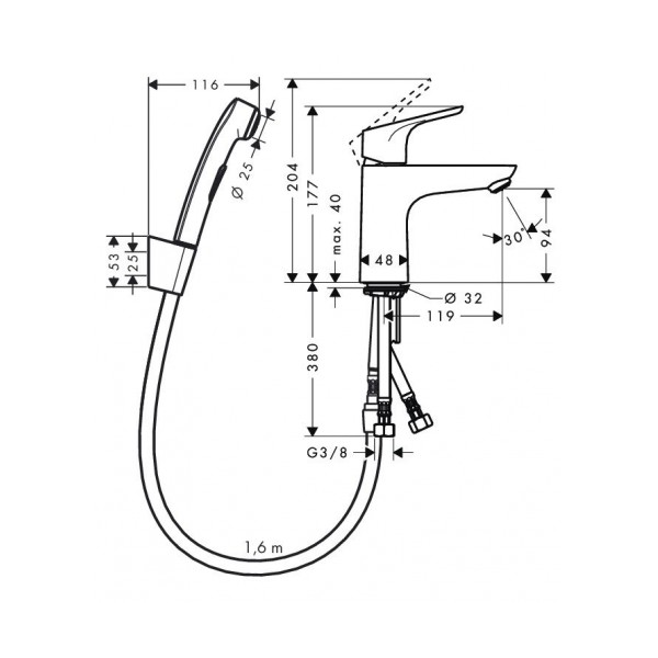 Смеситель для раковины с гигиеническим душем Hansgrohe Focus, хром, 31927000