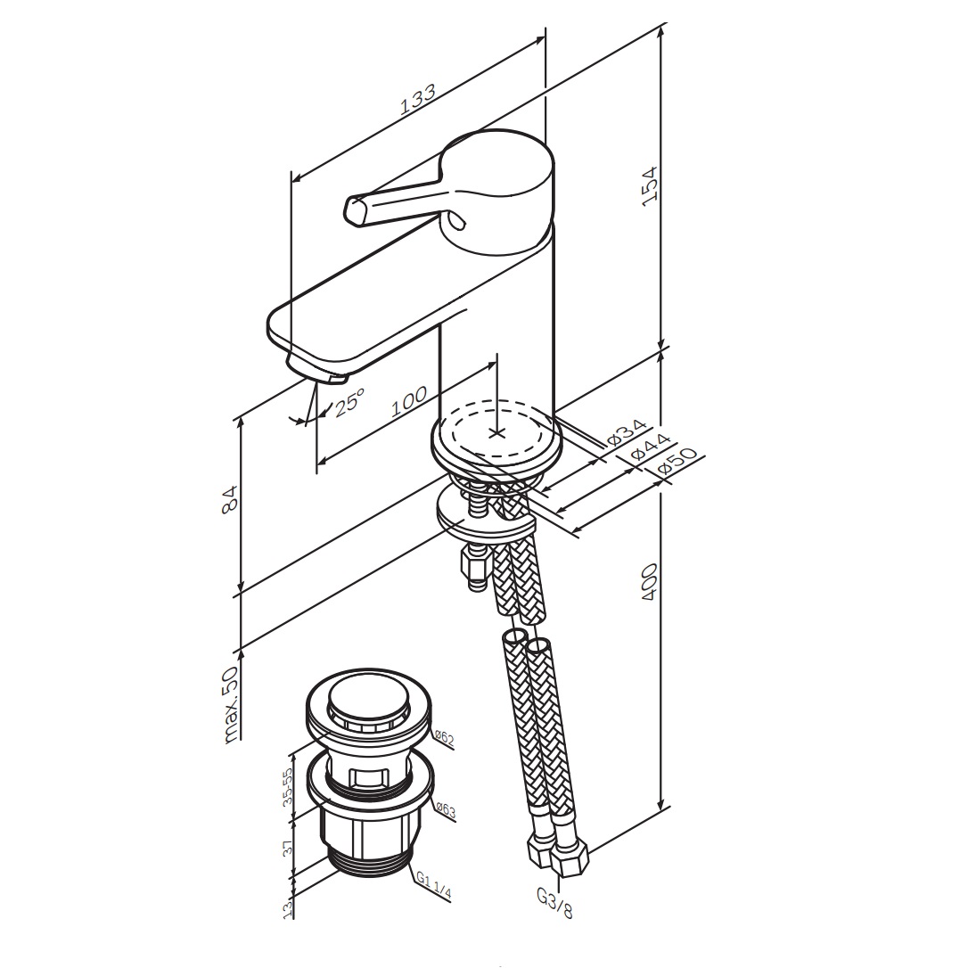 Высота излива (мм) 84