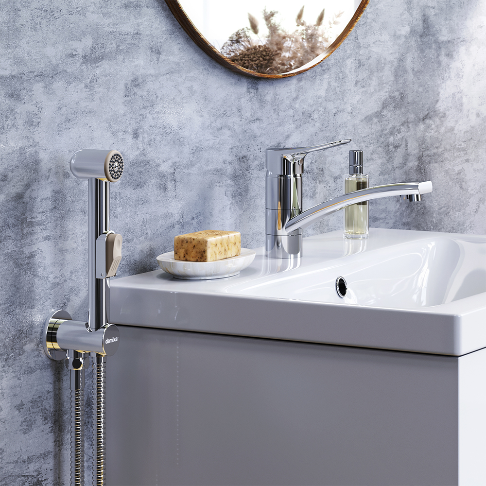 Смеситель для раковины с гигиеническим душем Damixa Jupiter, хром, 770230001