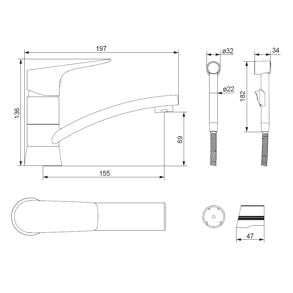 Высота излива (мм) 69