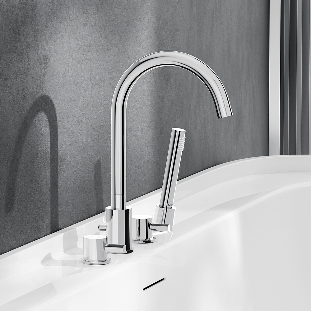 4х-секционный смеситель, монтируемый на борт ванны – это не только яркий акцент, но и идеальное решение для отдельностоящей ванны. А ручки и лейка в трендовой форме стика привнесут особую эстетику в интерьер ванной комнаты.